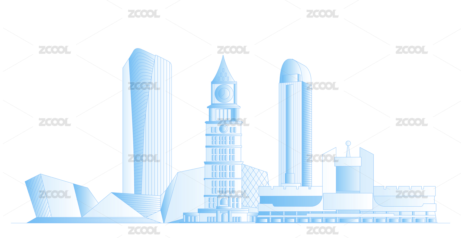 描边,线条,城市,建筑,矢量,插画,著名景点,建筑群,轮廓,地标