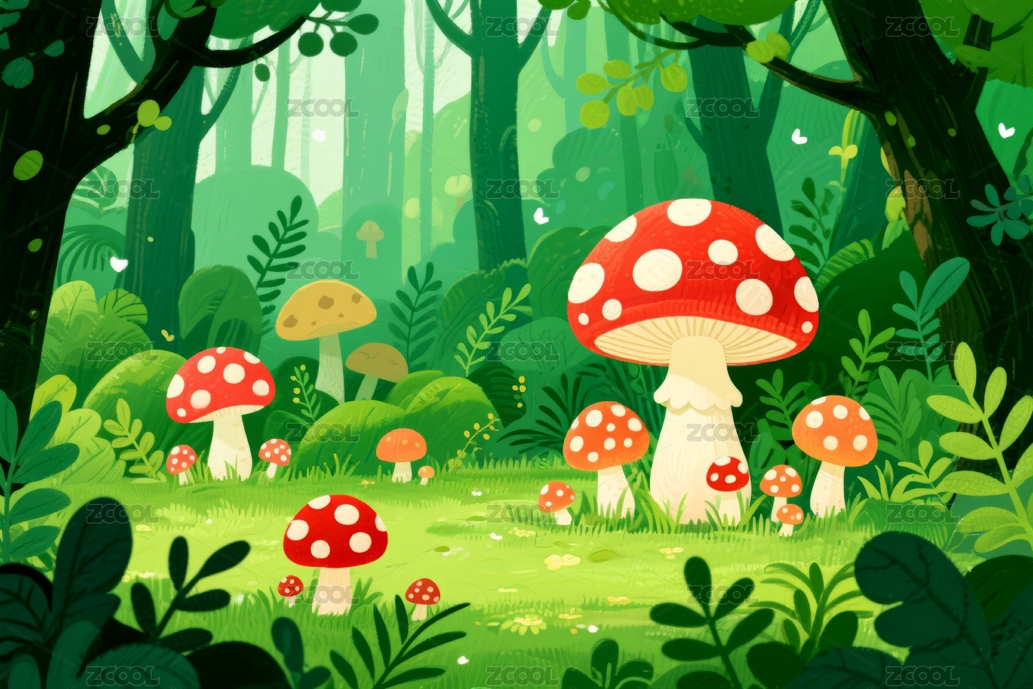 惊蛰节气春天室外蘑菇小朋友坐七星瓢虫插画
