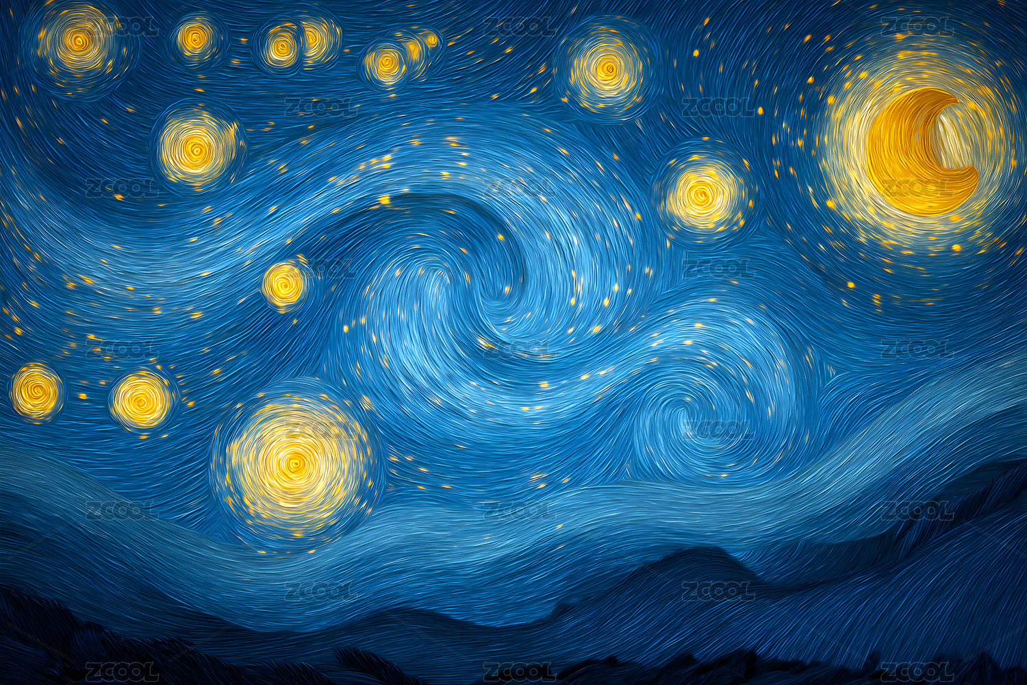 手绘卡通艺术抽象梵高风格印象派背景素材