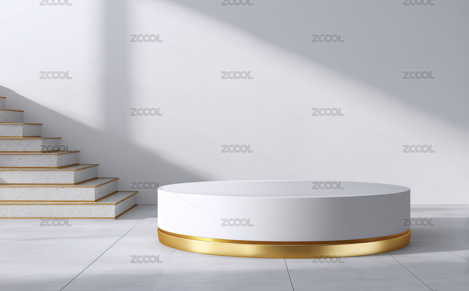 米色背景上的圆形展示台