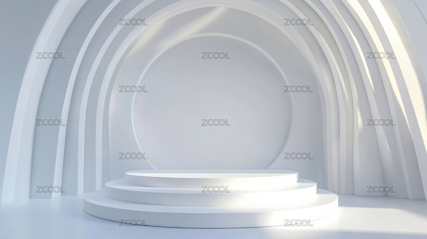 简约白色弧形背景与圆形平台