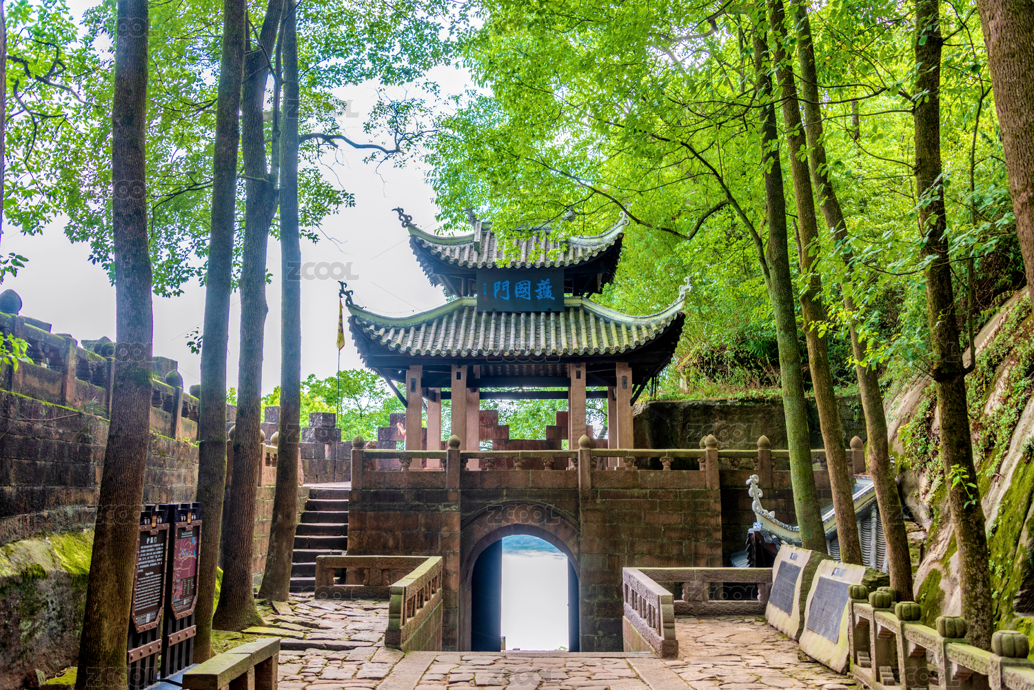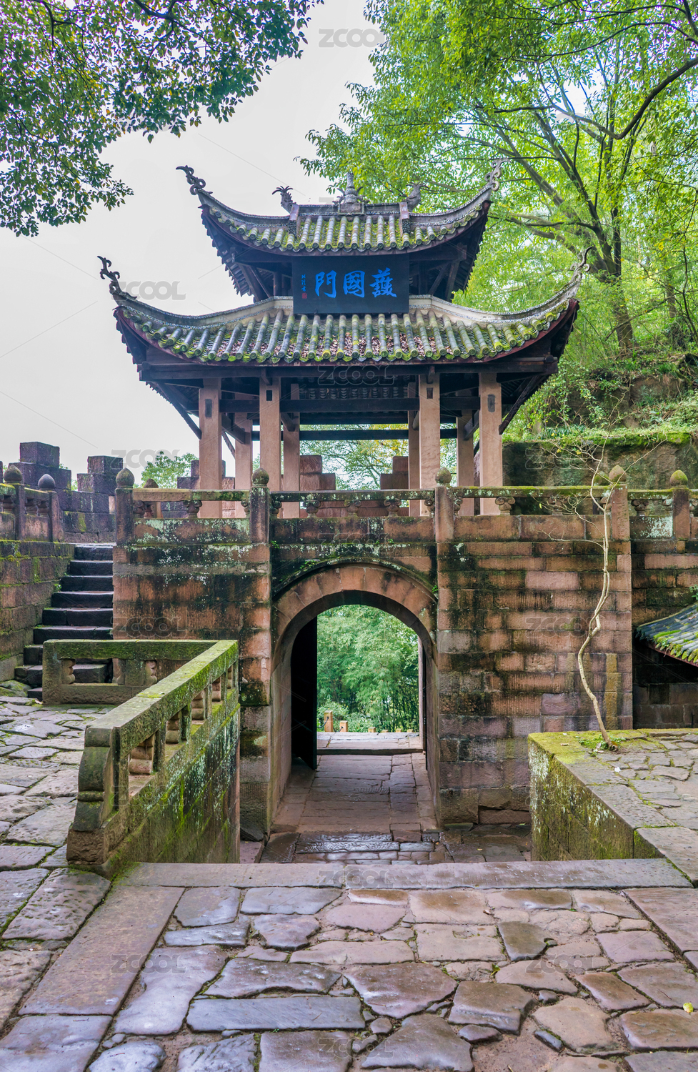 中国重庆市合川区嘉陵江畔合川钓鱼城护国门城门建筑风光