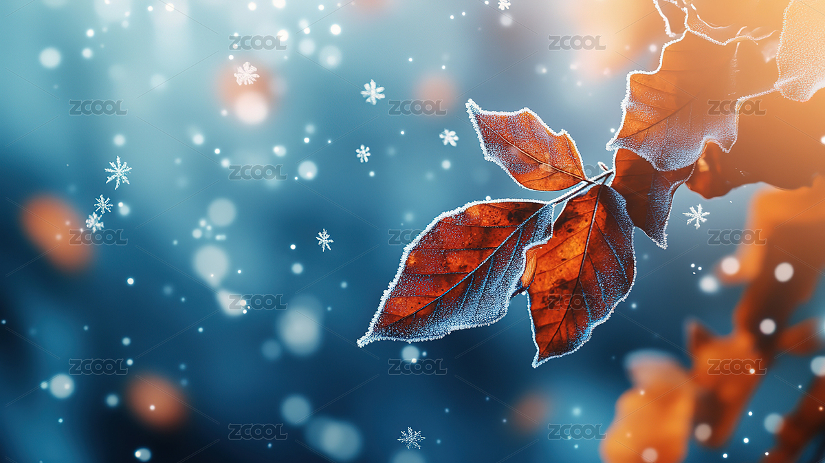 秋叶飘雪静谧景象