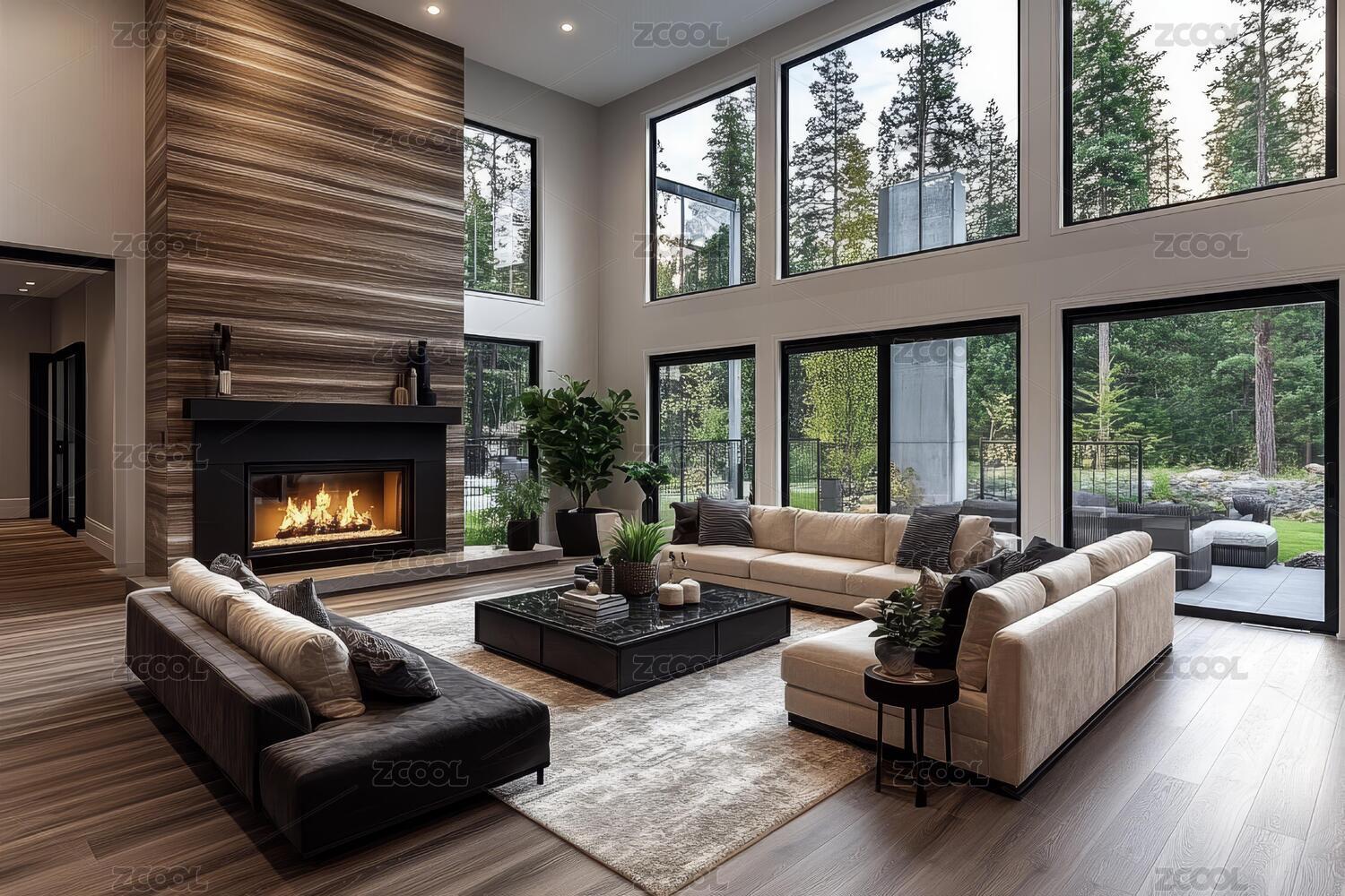 现代豪华客厅大窗户
