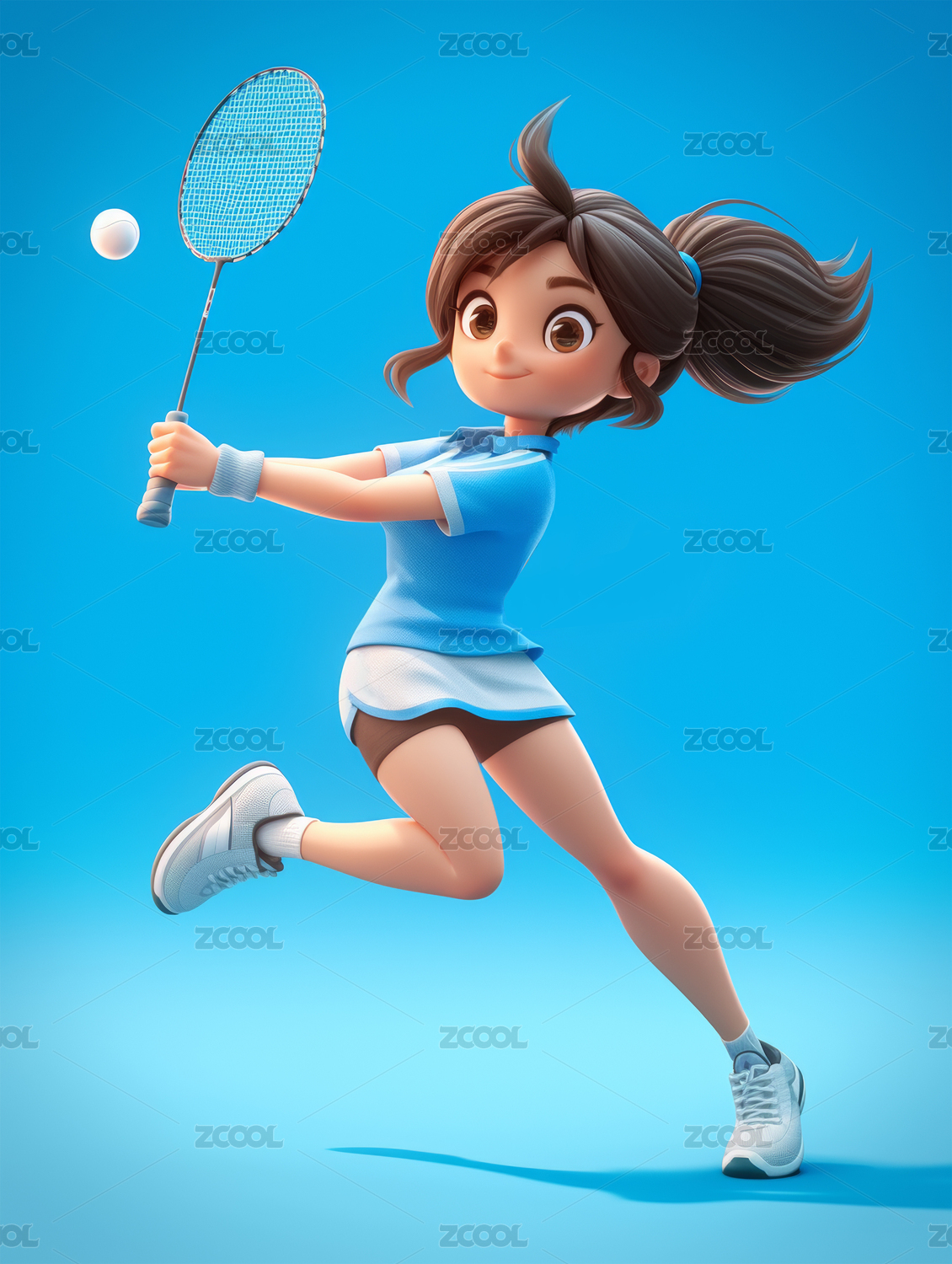 3D卡通职业羽毛球运动员