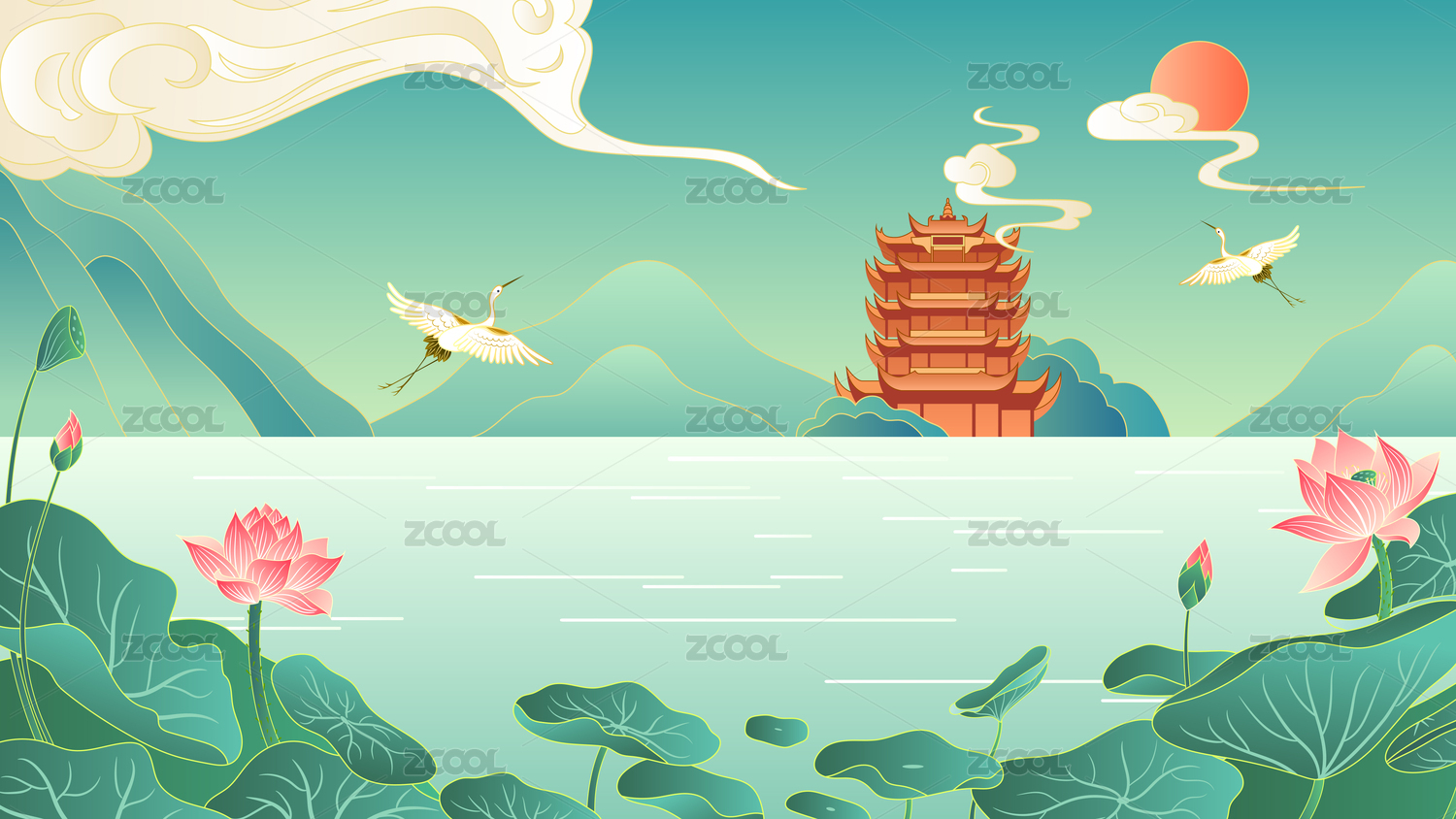 黄鹤楼,武汉,国风,中国,中国风,建筑,风景,古楼,矢量,插画