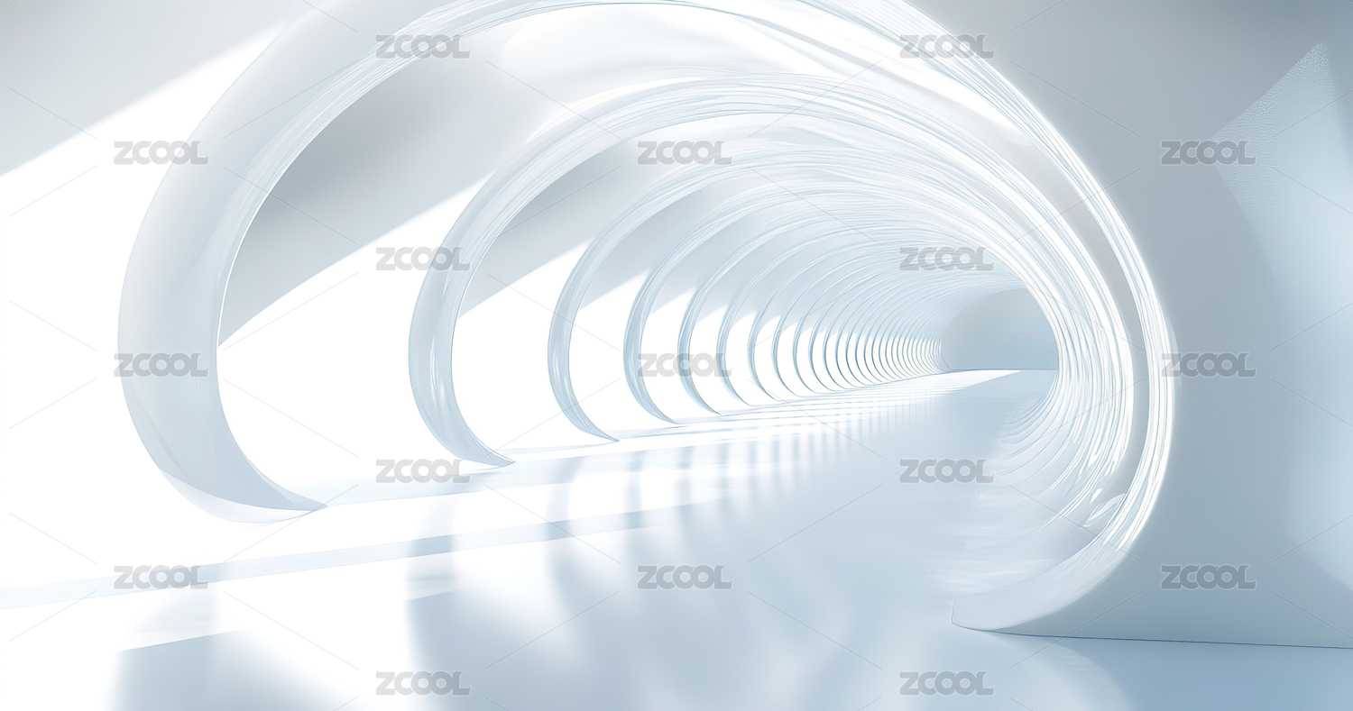 白色弧形隧道的未来感空间