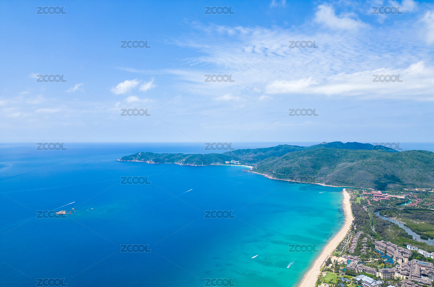 航拍国家海岸海南三亚亚龙湾海岸线与游艇风