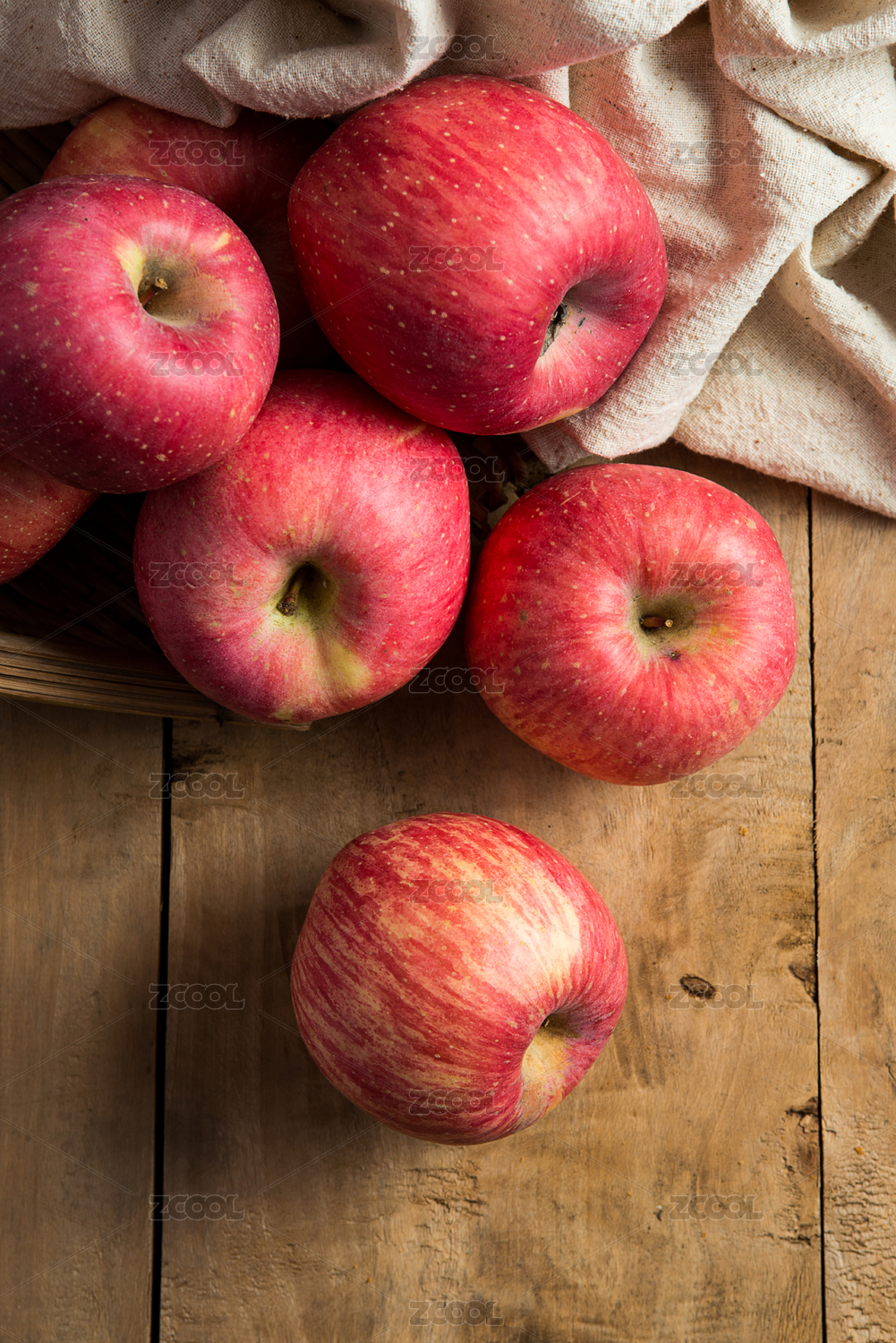木质桌面上的一筐苹果
