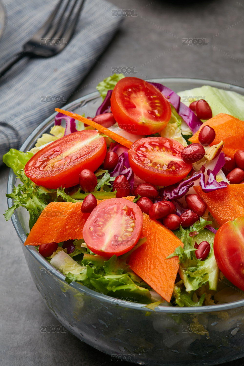 蔬菜沙拉搭配芝麻口味沙拉汁