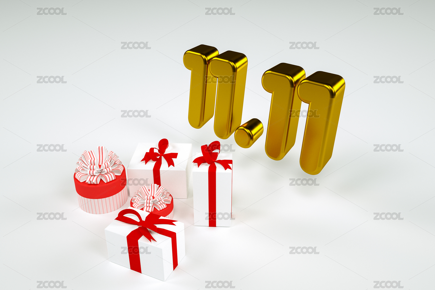 白色背景中的多种礼盒和双十一金色字体