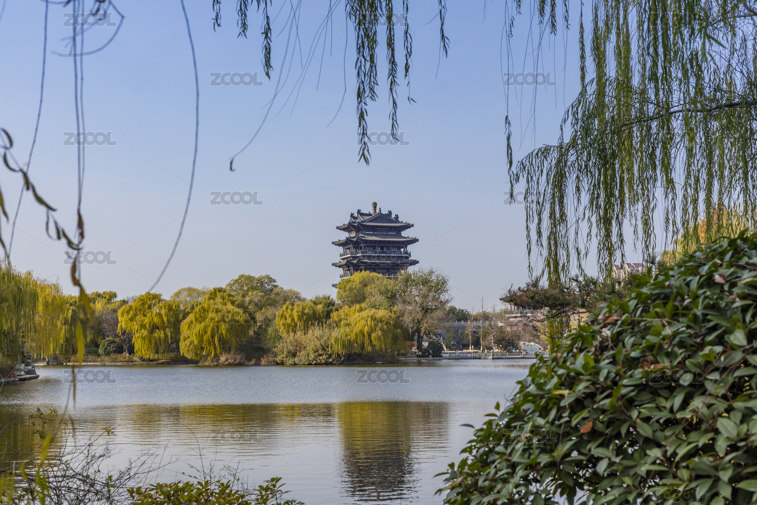 山东省济南市大明湖风景区春日黄昏美丽风光
