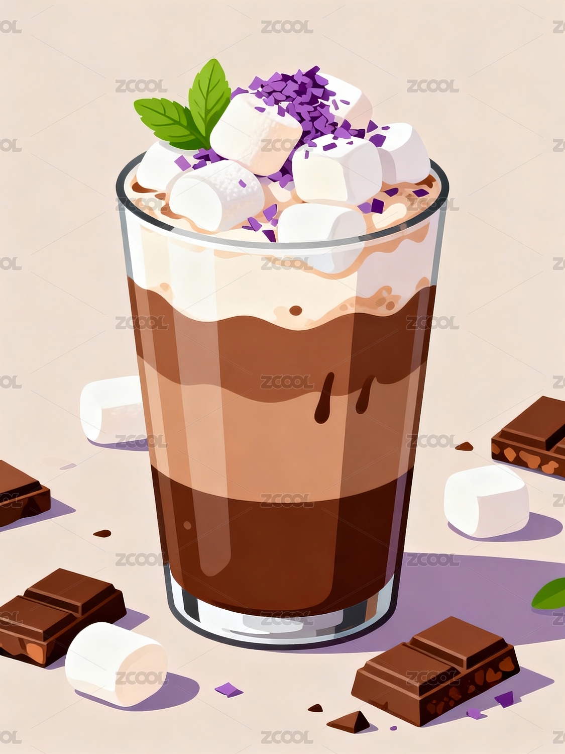 巧克力饮品搭配棉花糖饮品