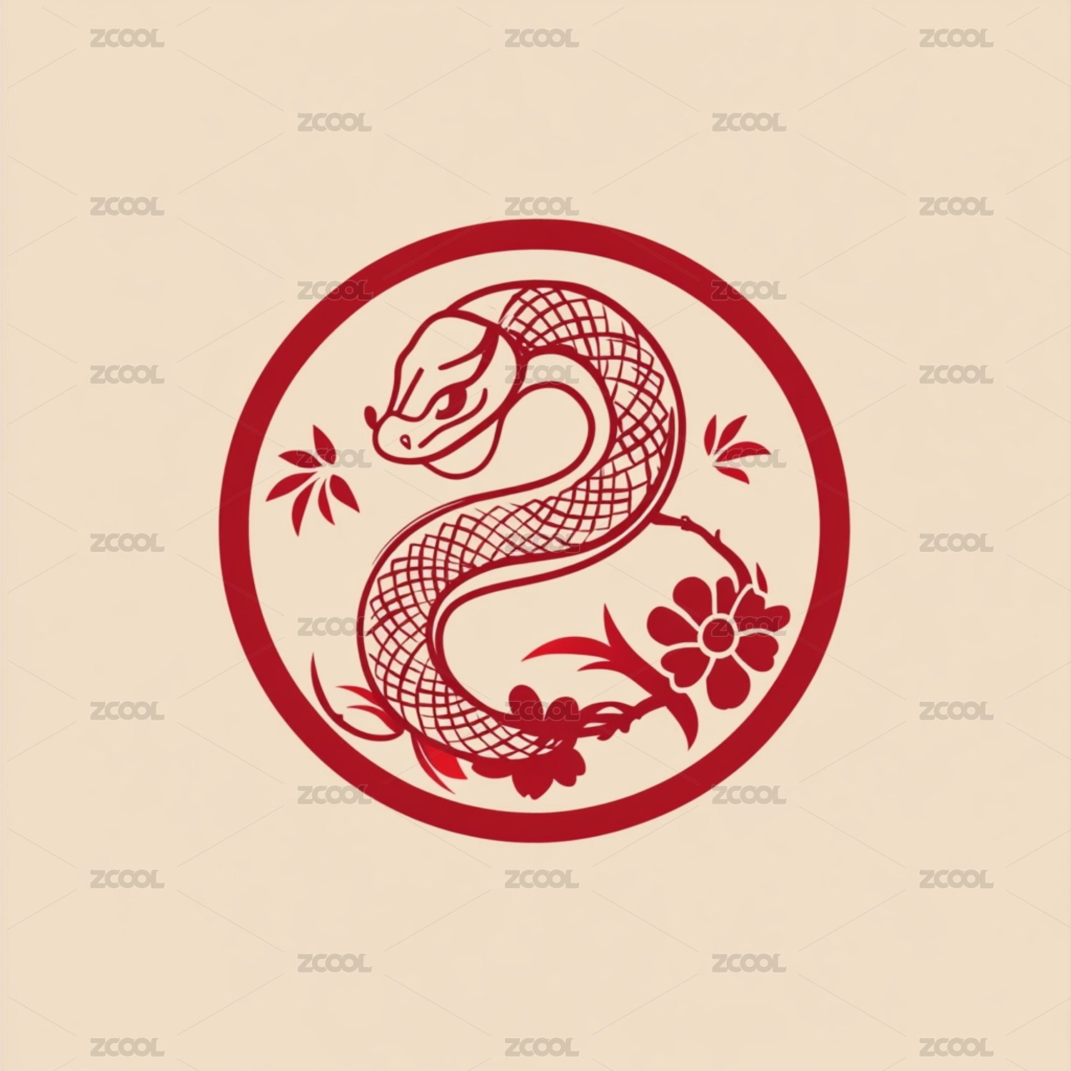 蛇年主题插画艺术剪纸图案logo徽章标志