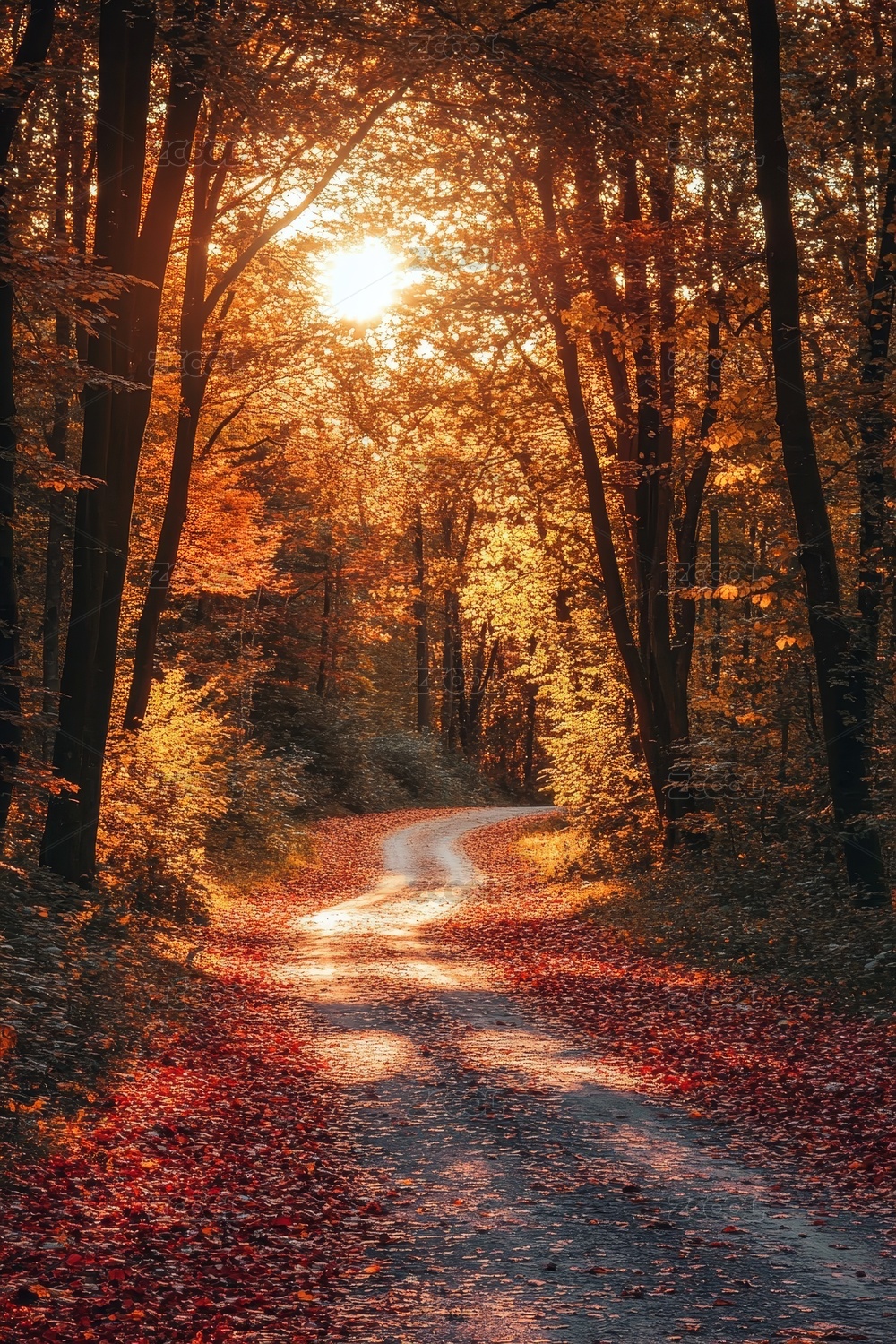 秋天枫叶森林树林树木红色场景竖版壁纸