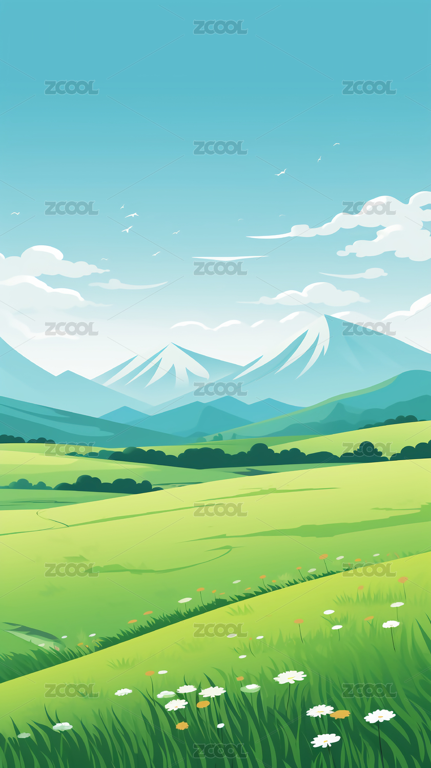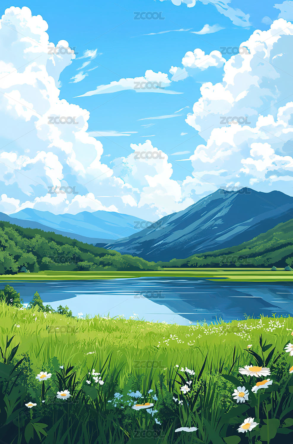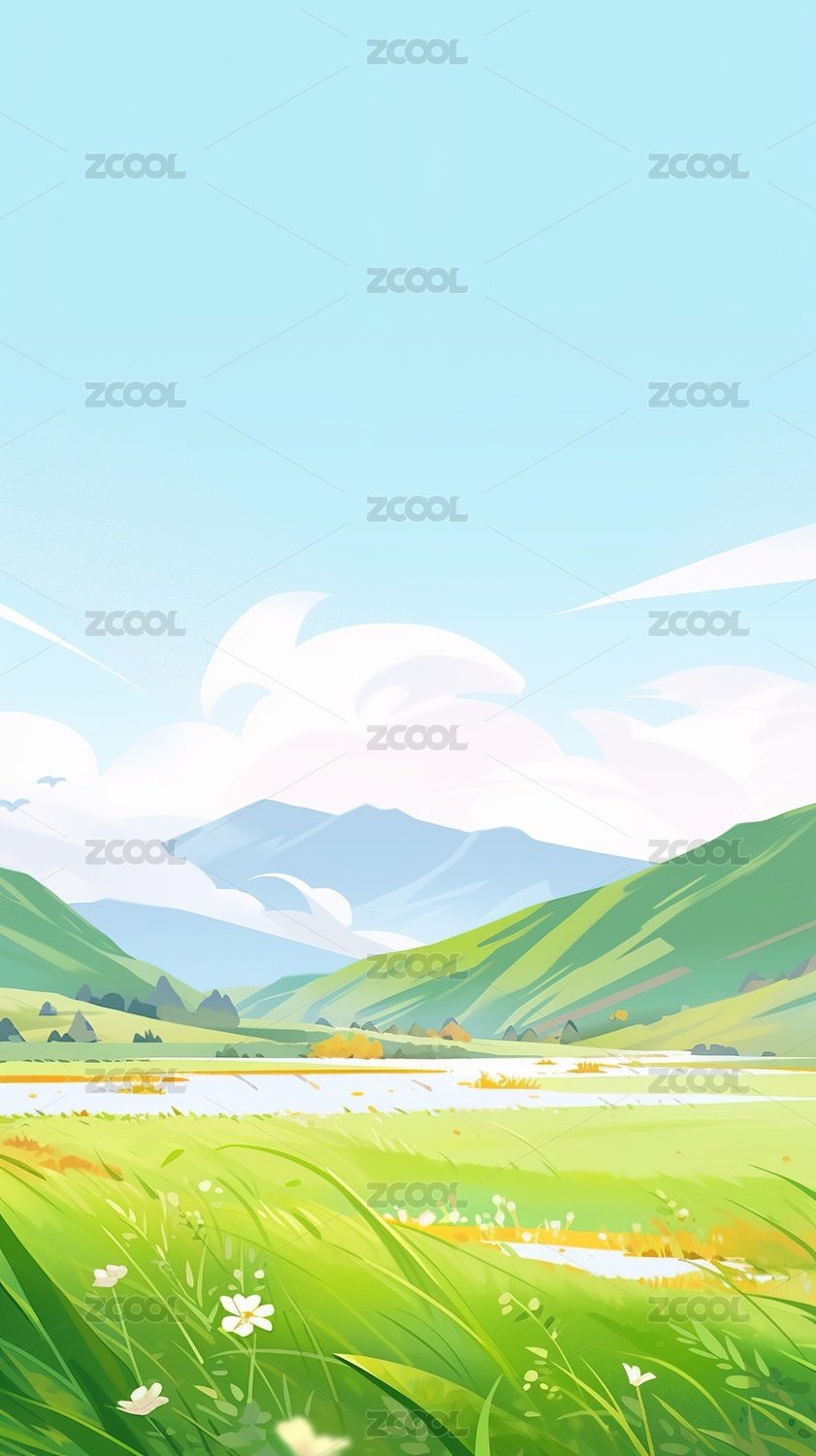 国潮,山水,风景,天空,云彩,插画,水墨画,古风