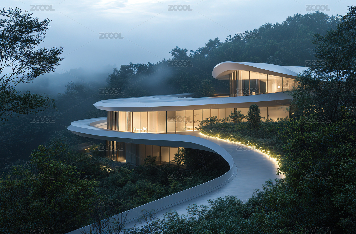 背景,设计,外观,建筑,现代,简洁,山居,酒店,民宿,树木