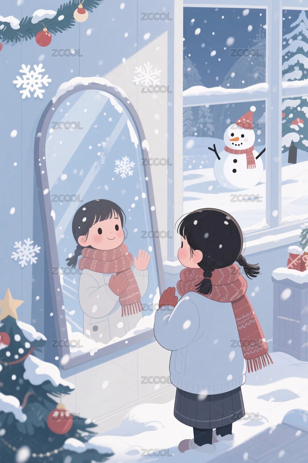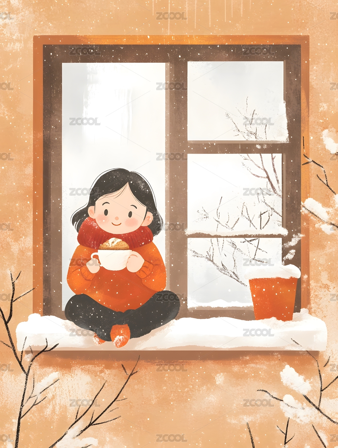 冬天,冬季,节气,小寒,大雪,风景,插画,背景,雪,人物