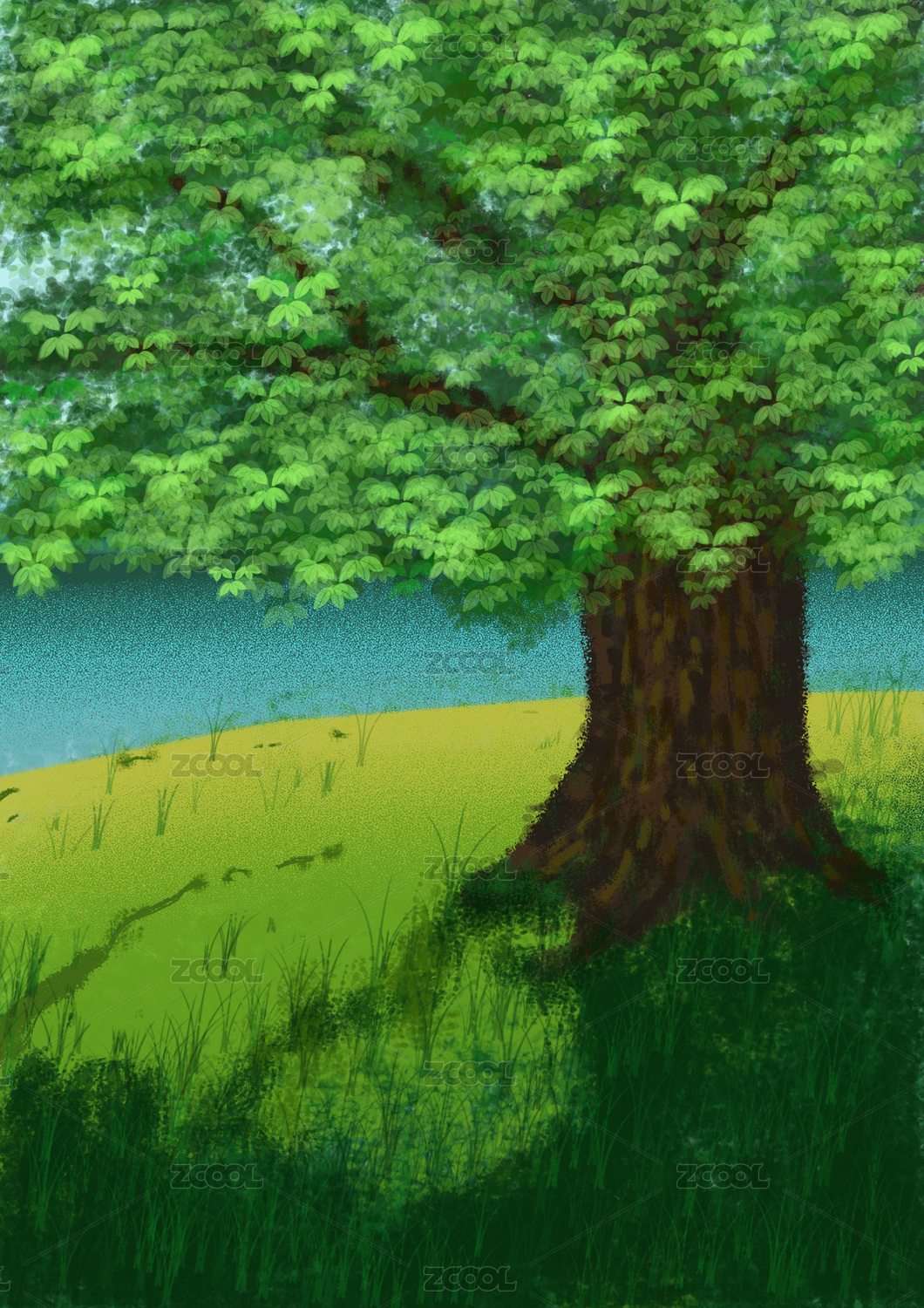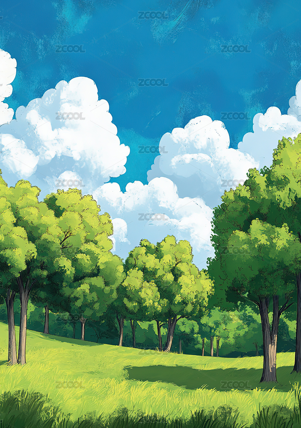 夏天公园户外几棵绿色的树手绘插画