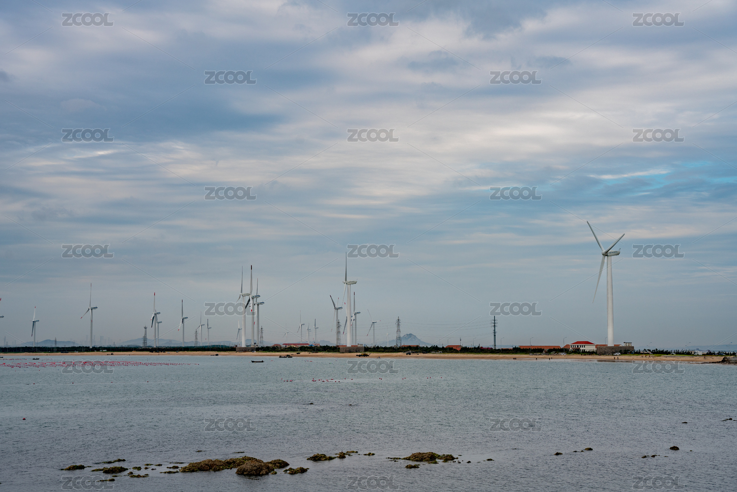 中国黄海滩涂上的风力发电机组