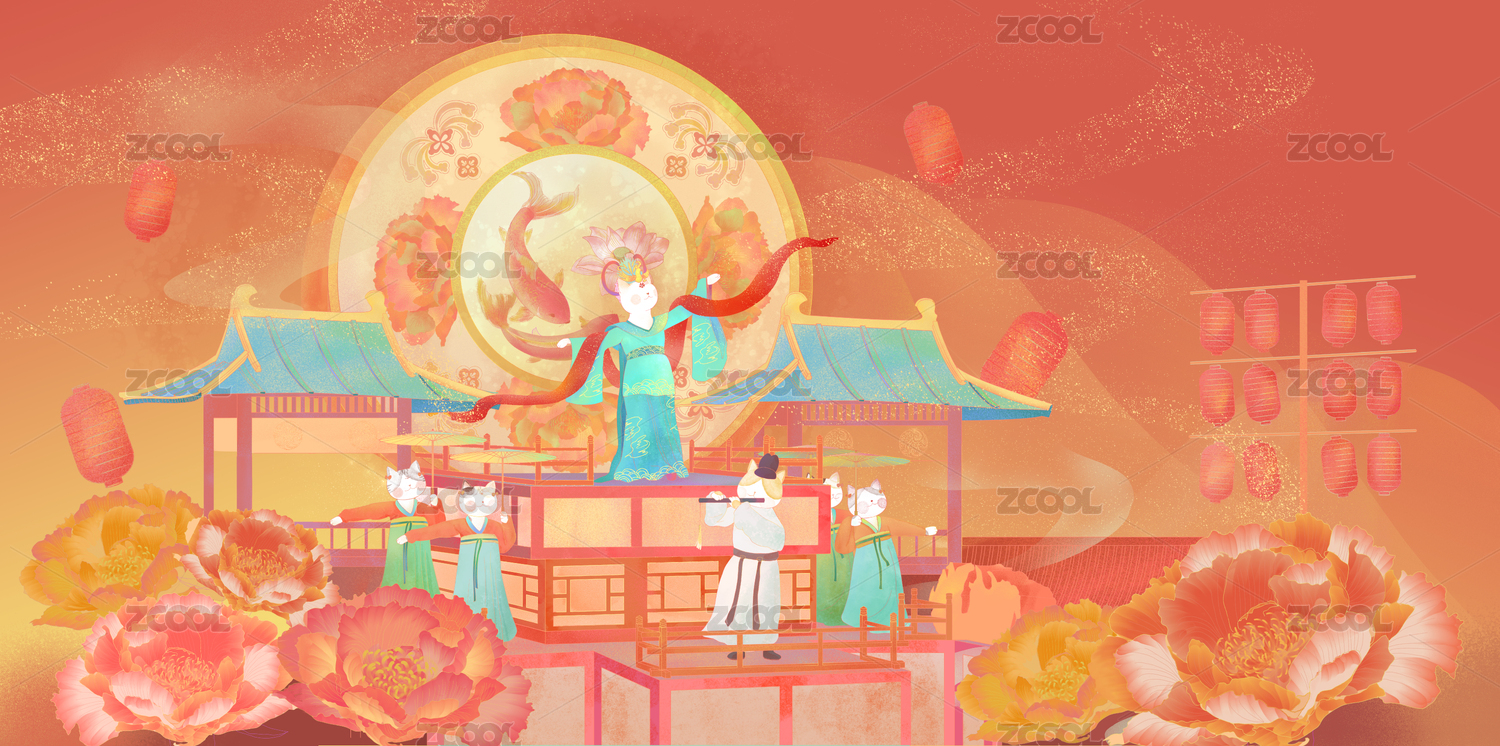 国潮风插画之唐朝仕女歌舞
