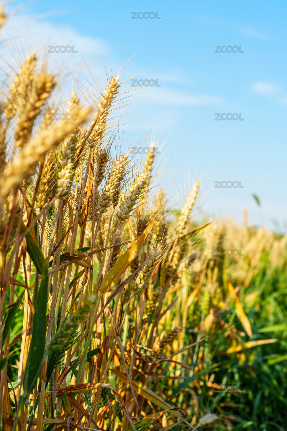 麦穗在蓝色天空下生长特写镜头粮食安全
