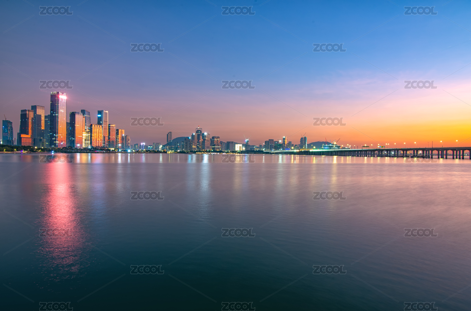 日落时分的厦门十里长堤全景图