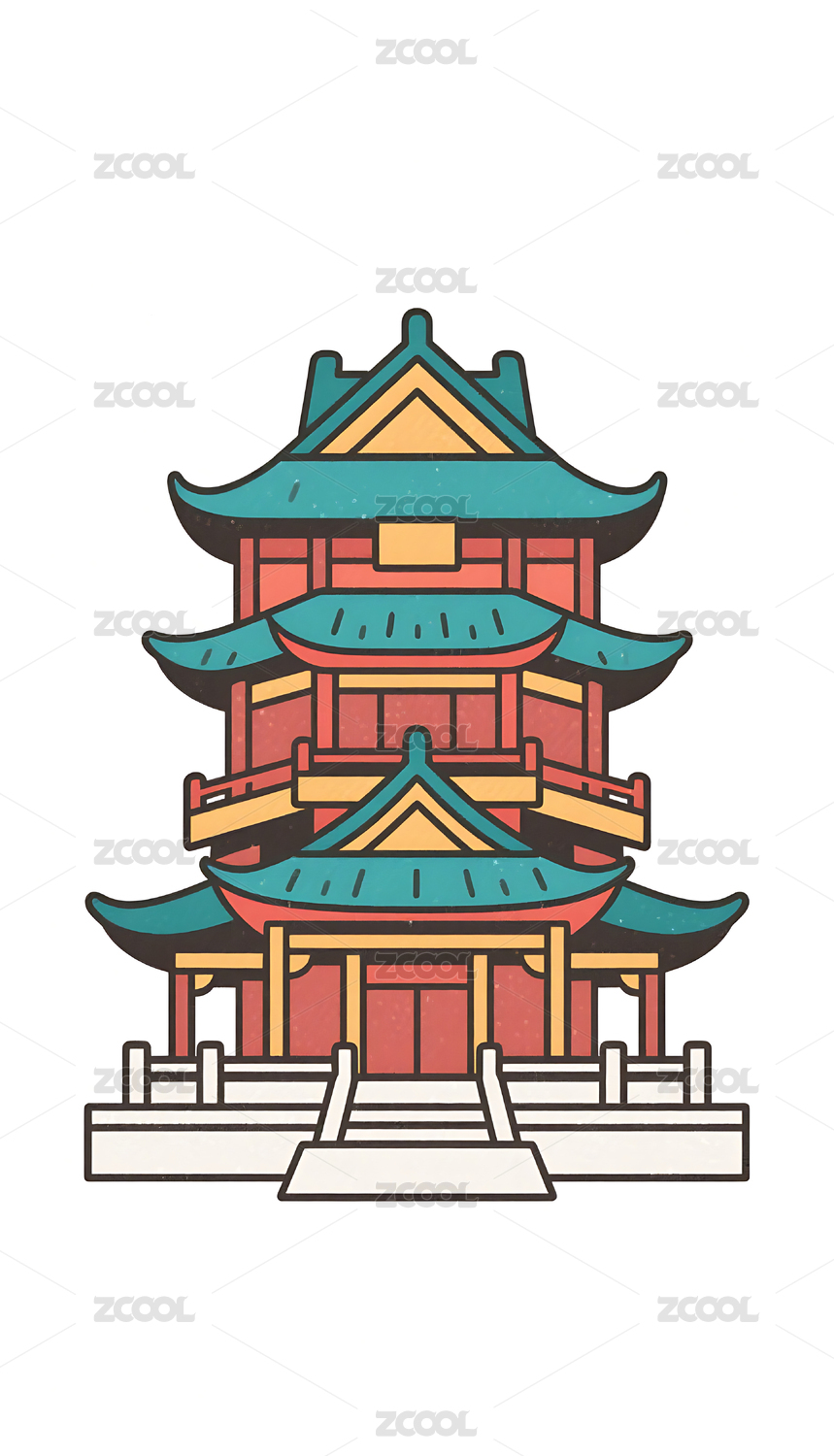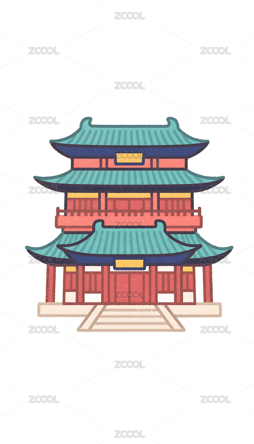 国潮传统文化插画中国风古建筑古楼阁楼凉亭