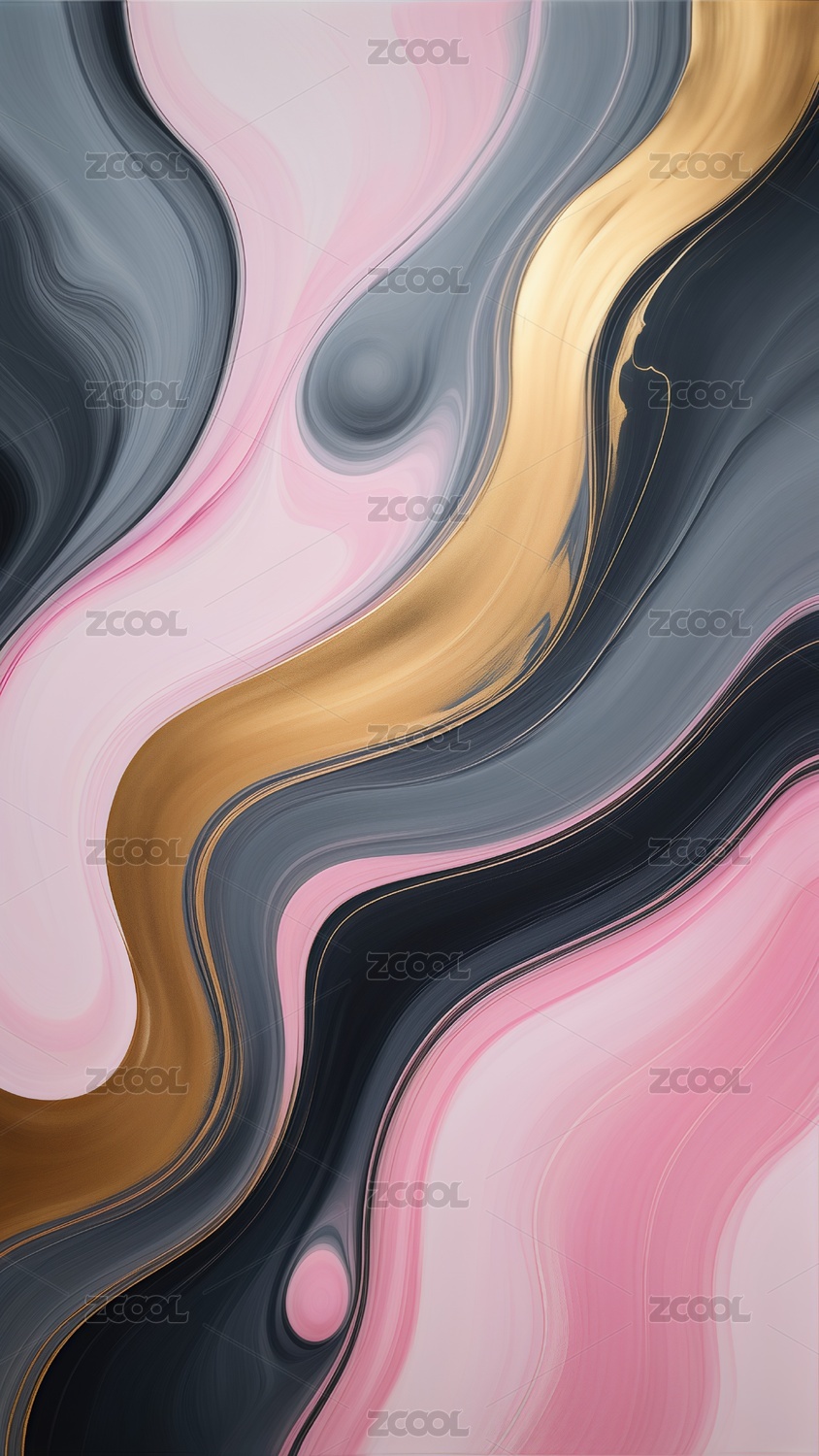 粉色金色流体流淌鎏金融合艺术