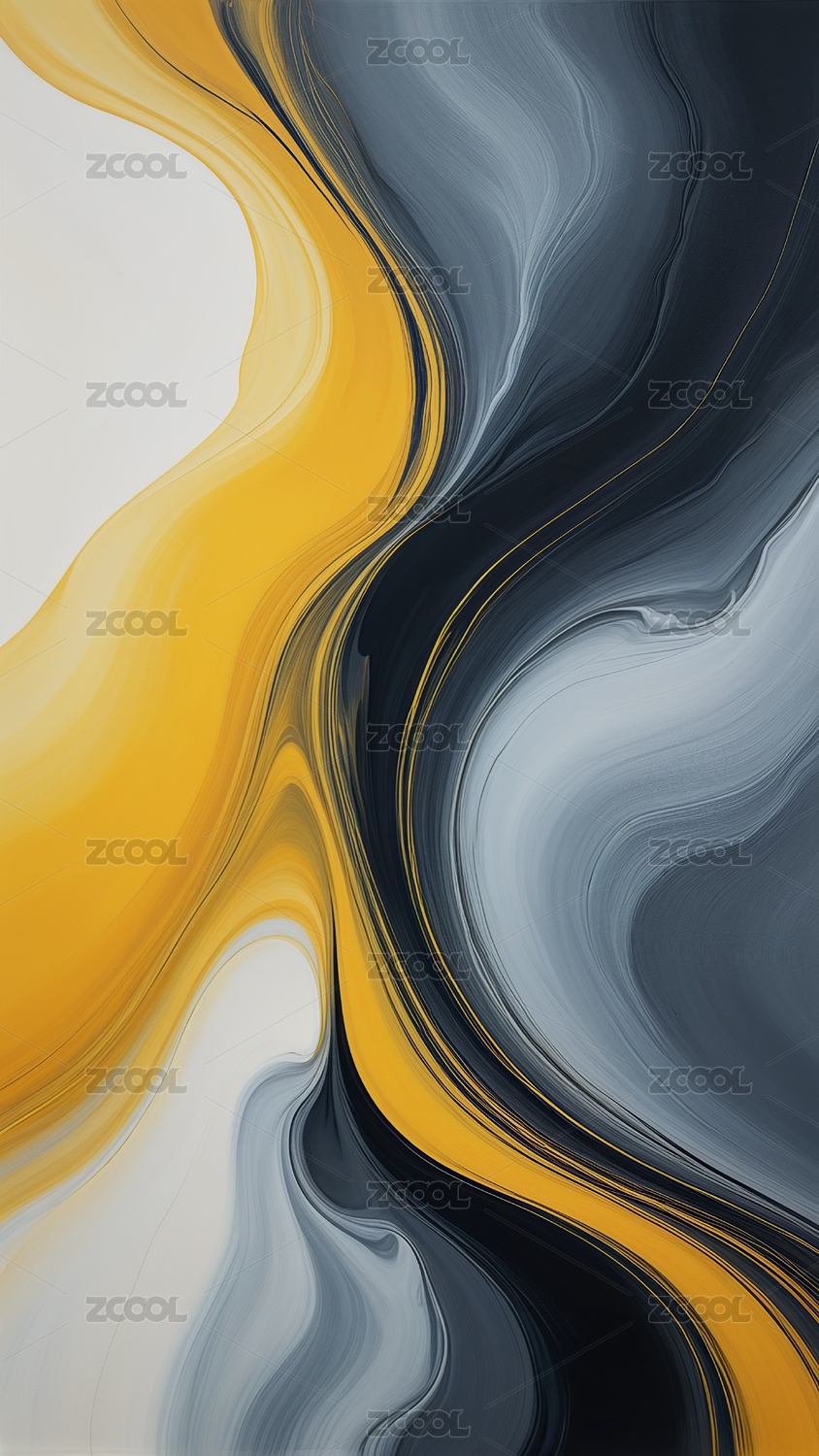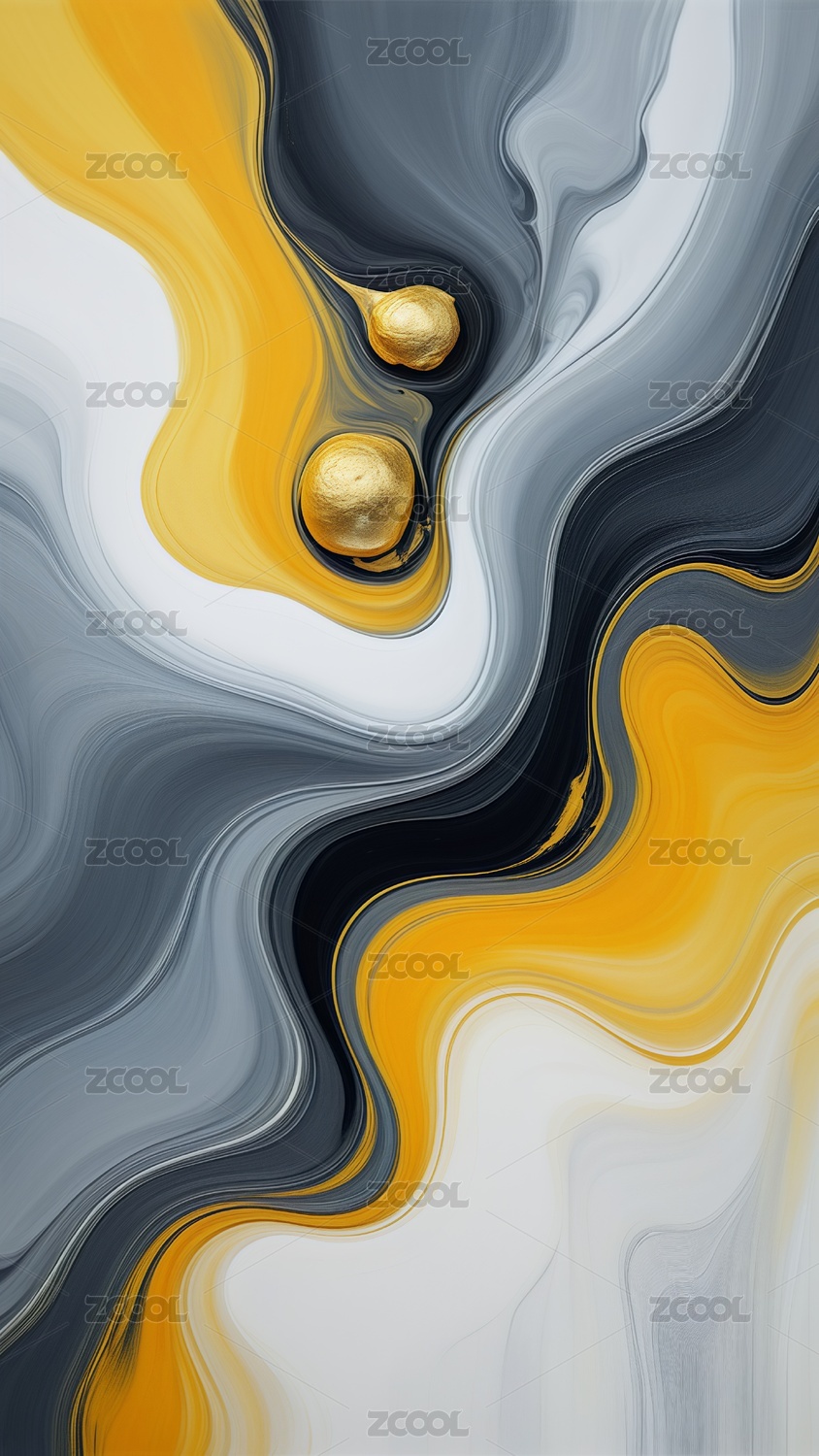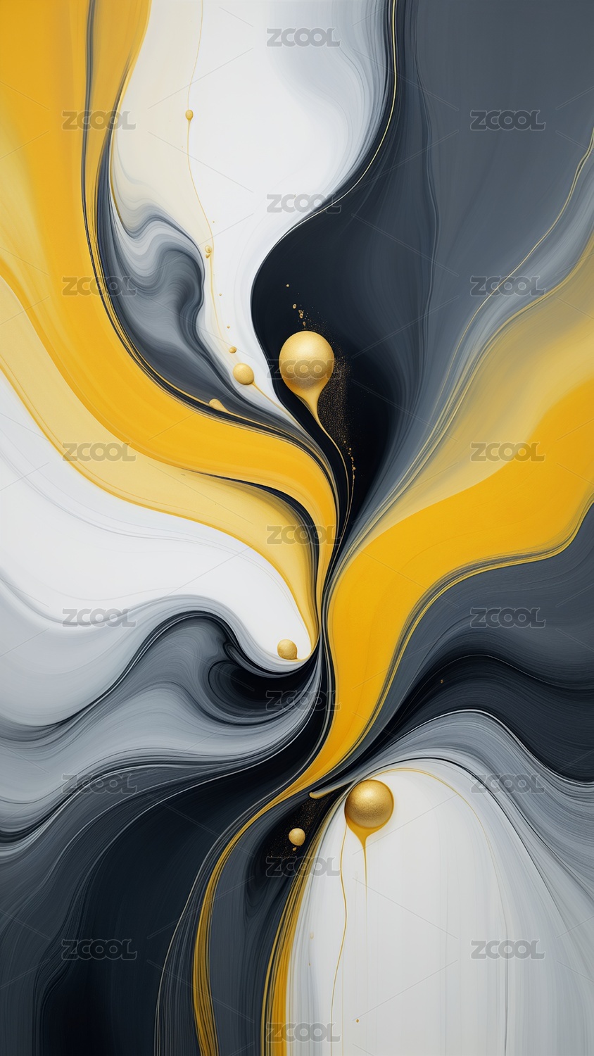 黄色黑色流体流淌鎏金融合艺术