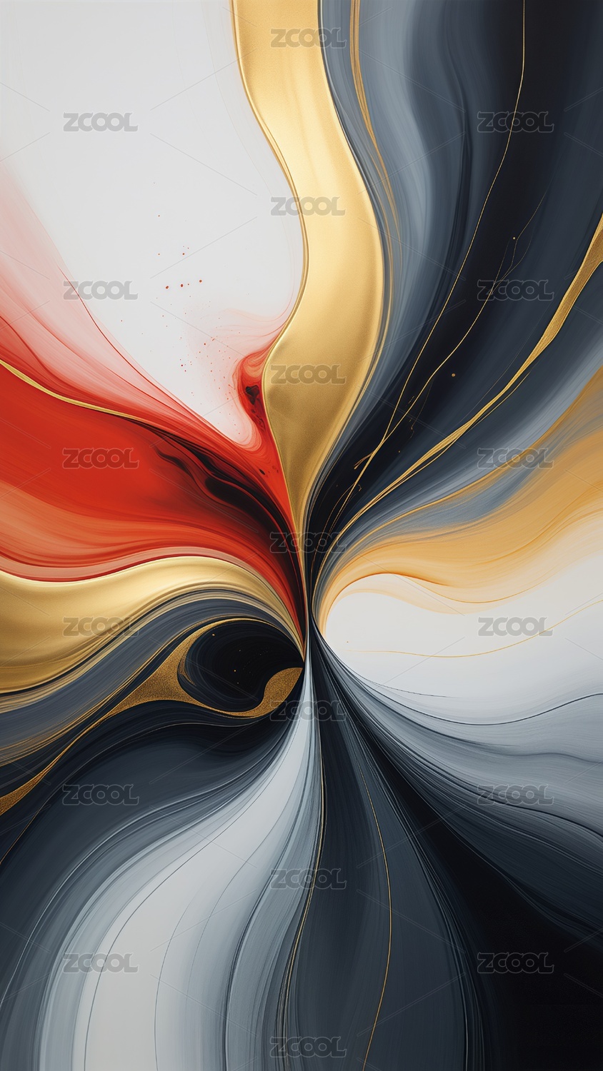红色金色流体流淌鎏金融合艺术