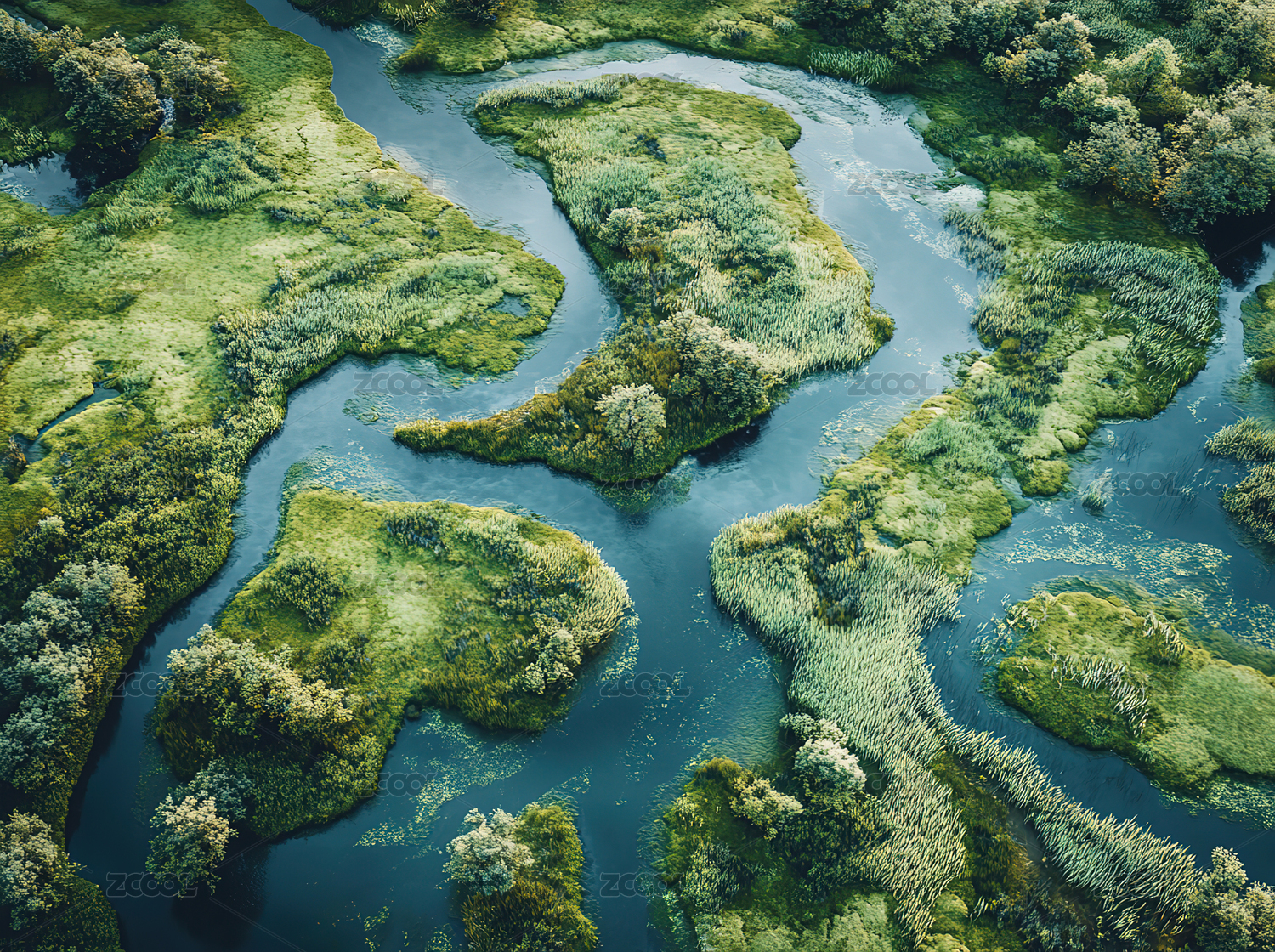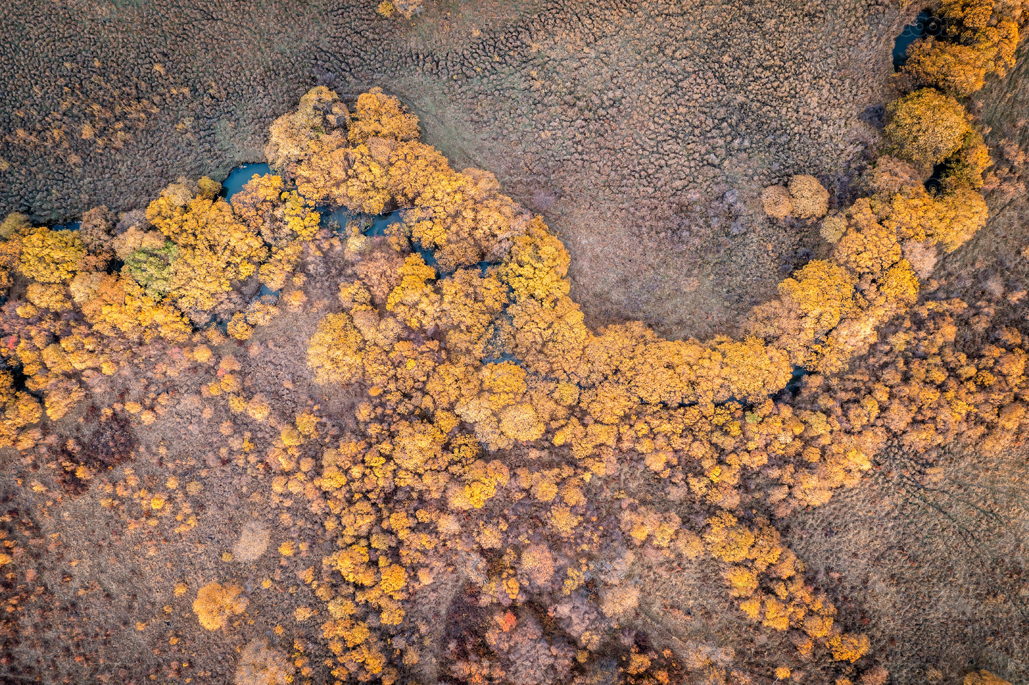 中国内蒙古呼伦贝尔湿地水草航拍风光