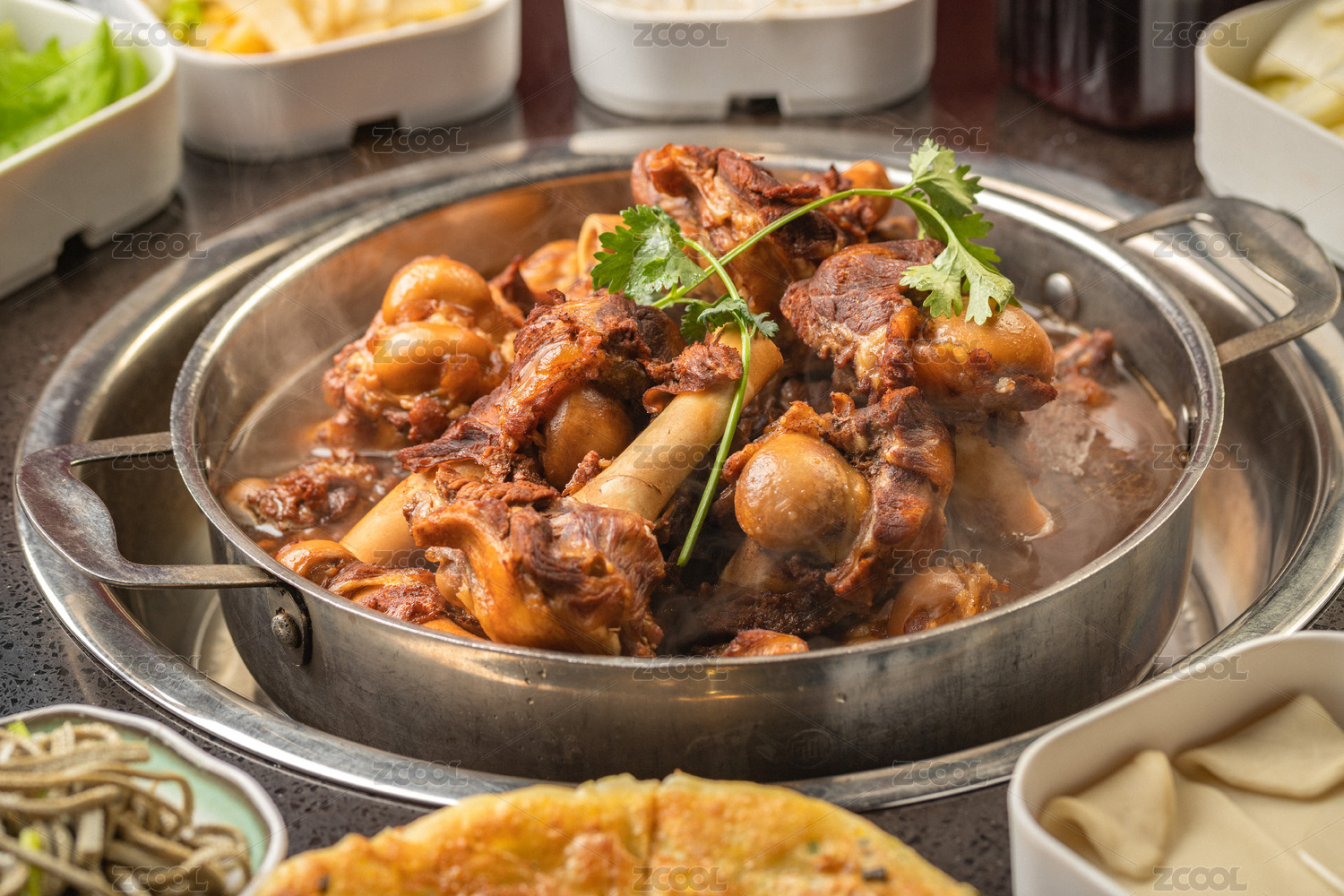 放在砂锅里的撒满辣椒面的烤猪蹄