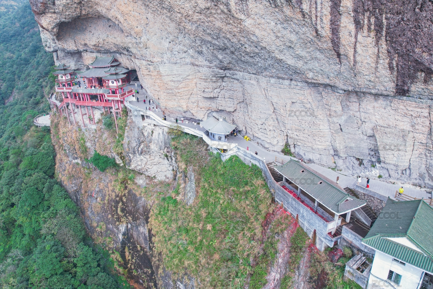 福建省漳州市平和县灵通山悬崖上的古建筑