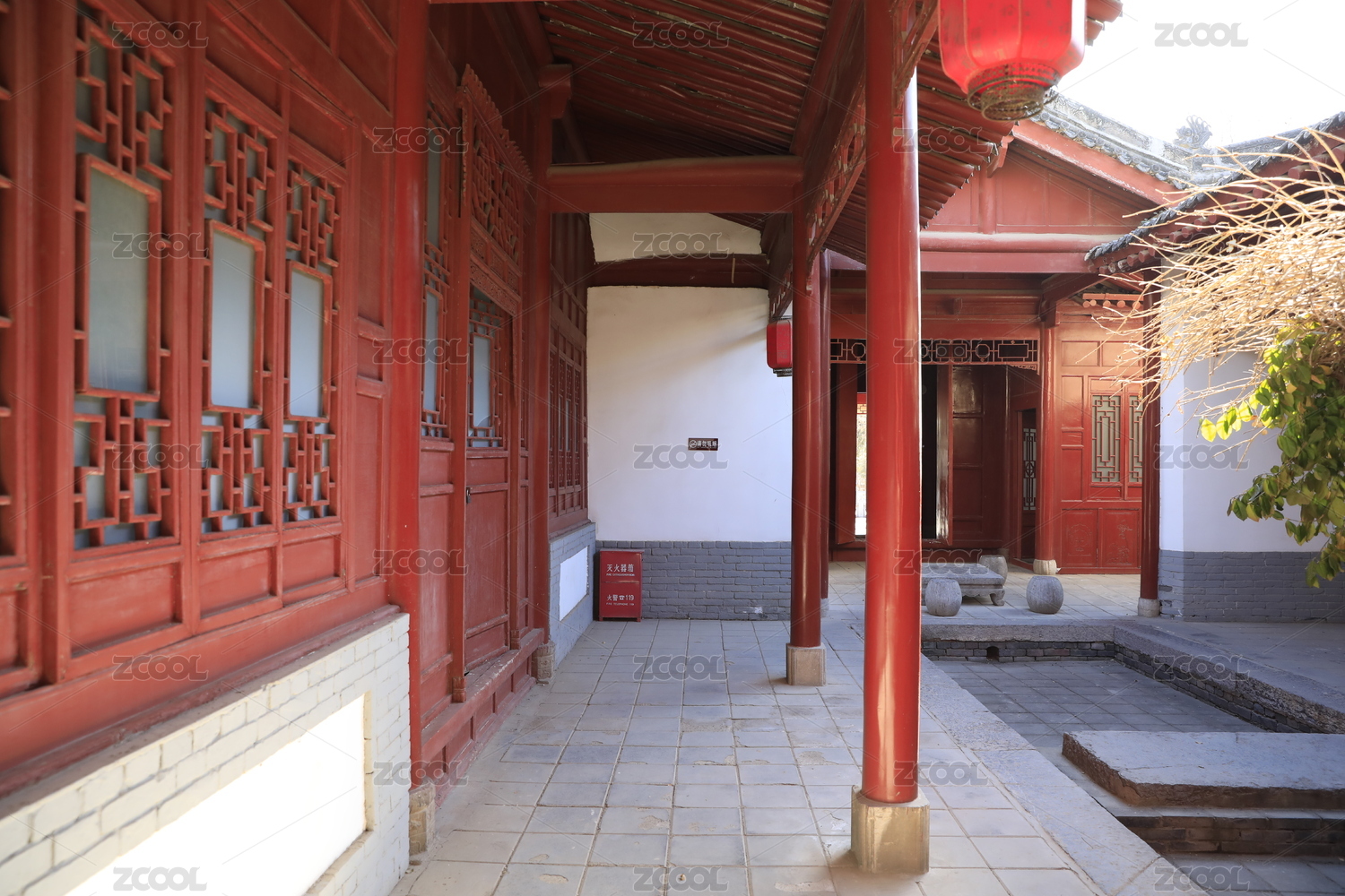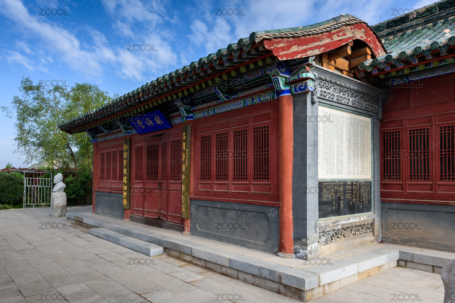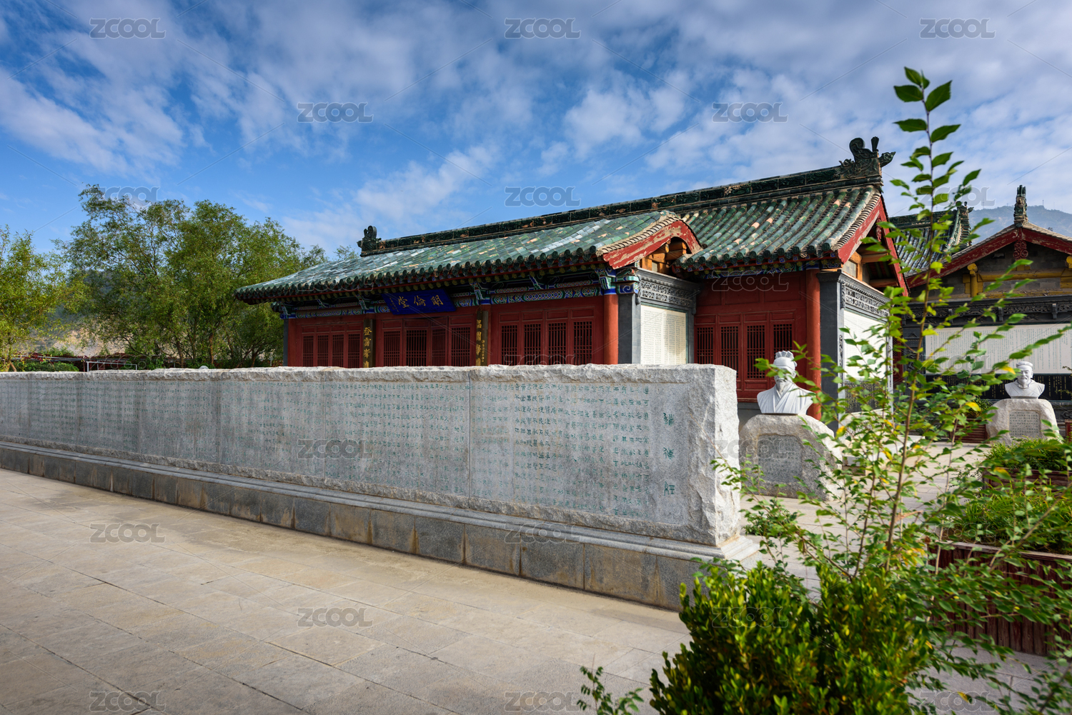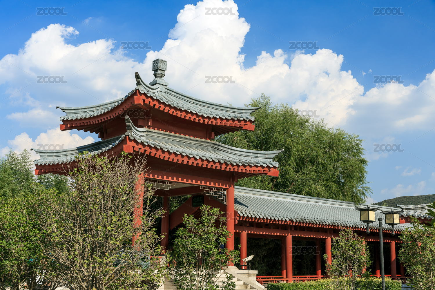 中国河南省登封少林寺景区蓝天白云古亭风光