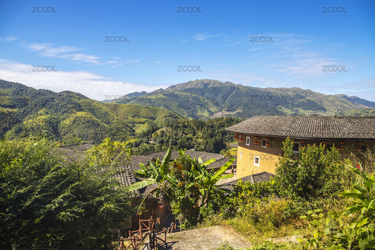 福建漳州客家土楼在大山中