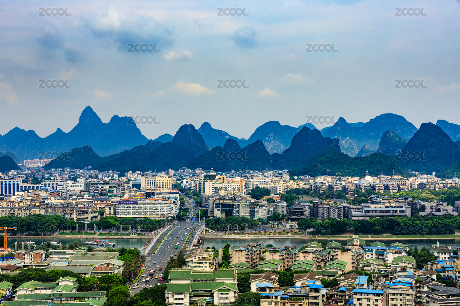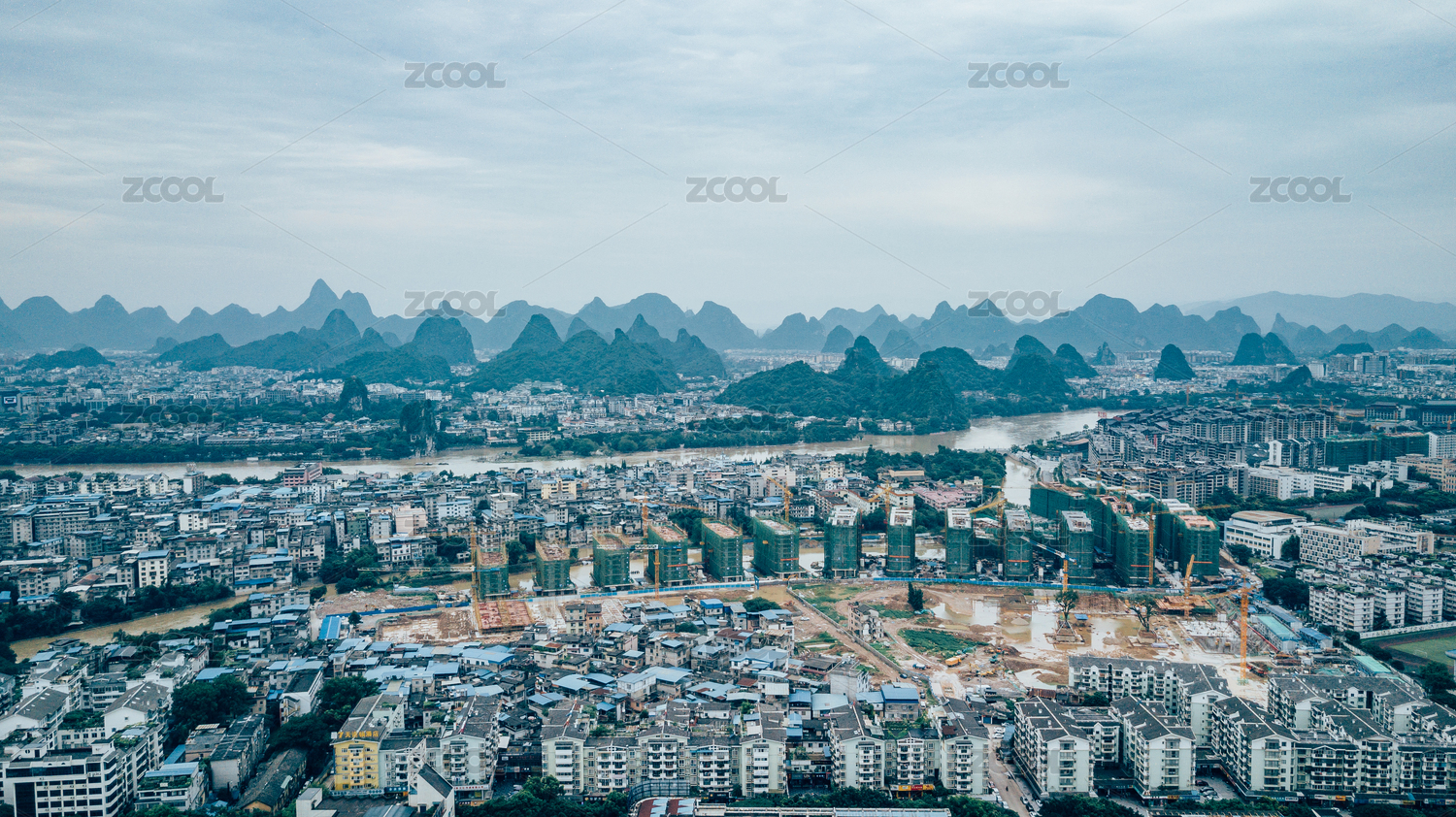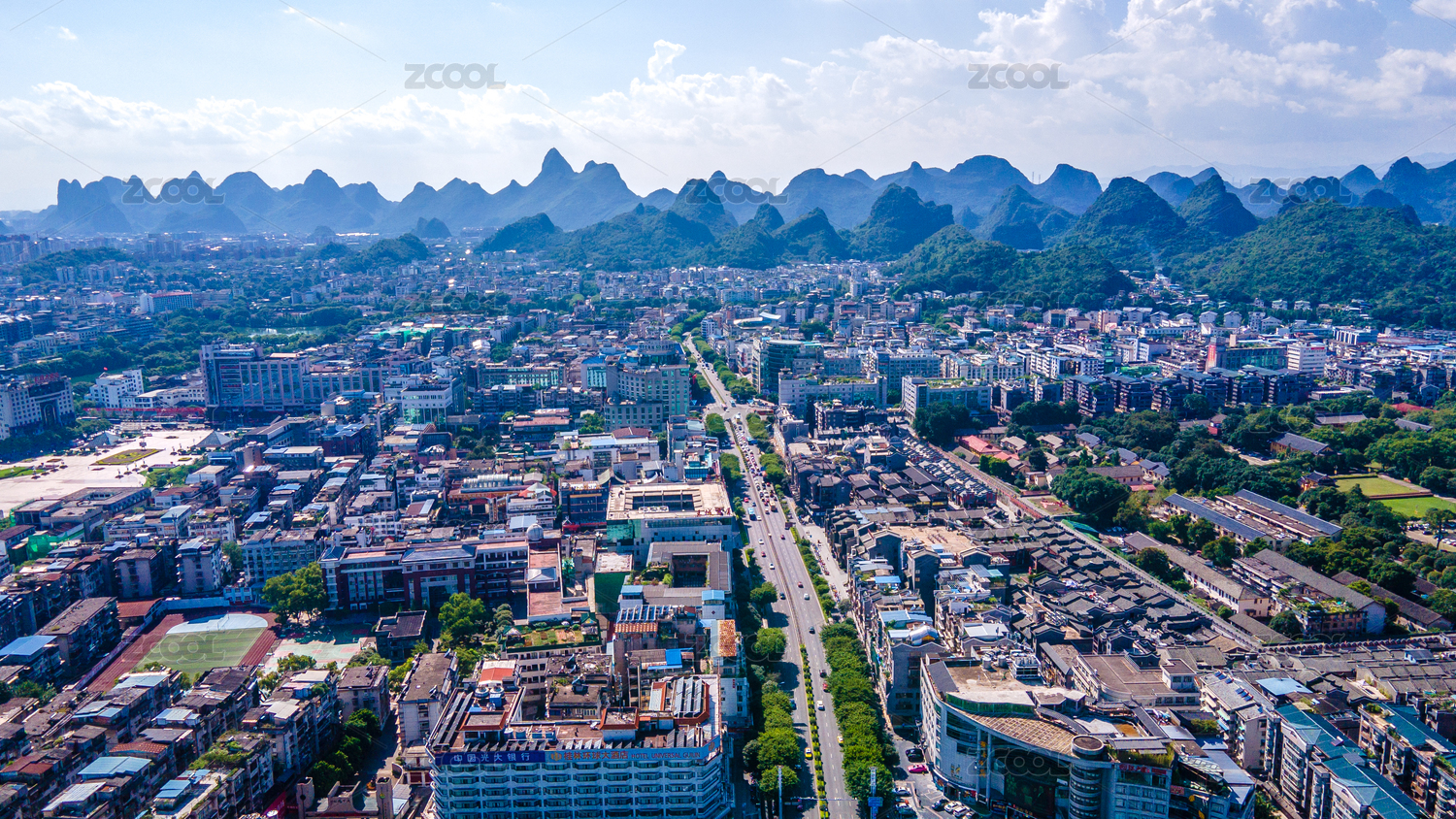 广西桂林漓江城市建筑喀斯特峰林航拍风光