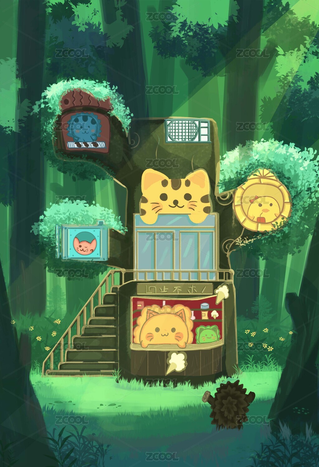 治愈森系夏日森林肌理插画