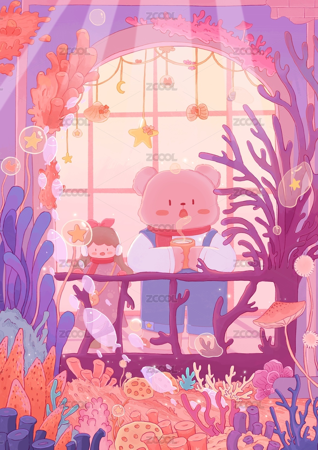 小熊的奇幻冒险之旅,儿童插画