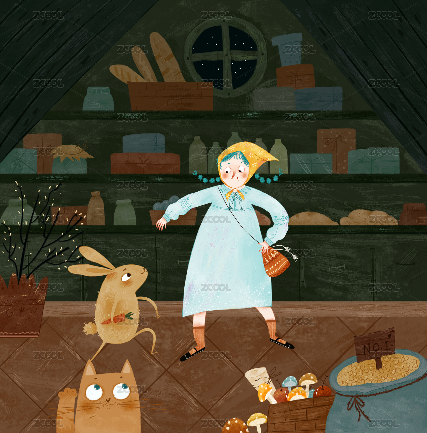 秋天童话房屋插画