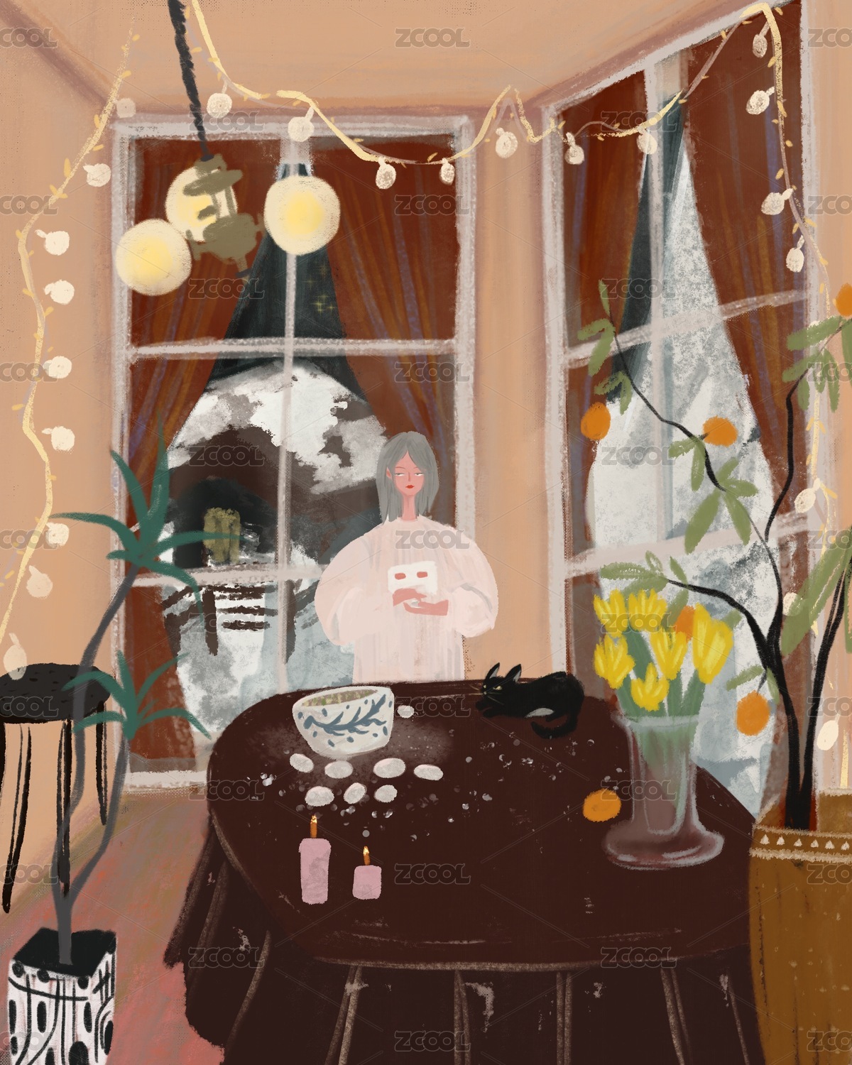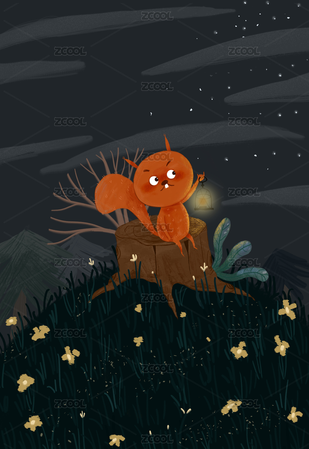 小怪物,树洞,夜晚,吃橘子,橘子