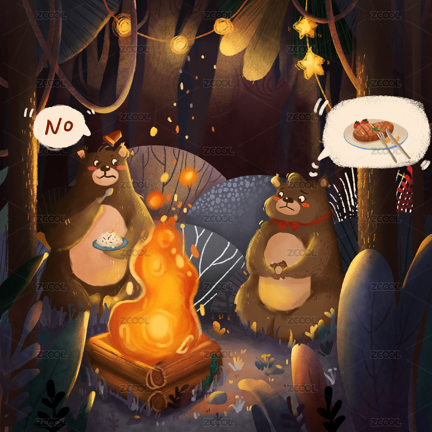 熊熊夜晚篝火