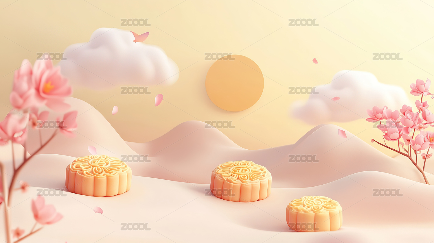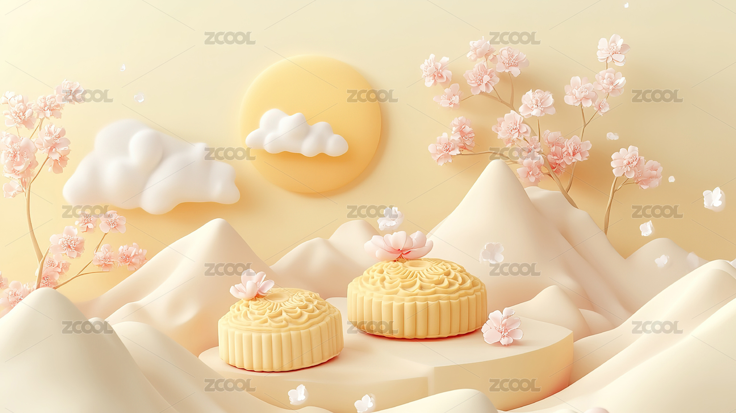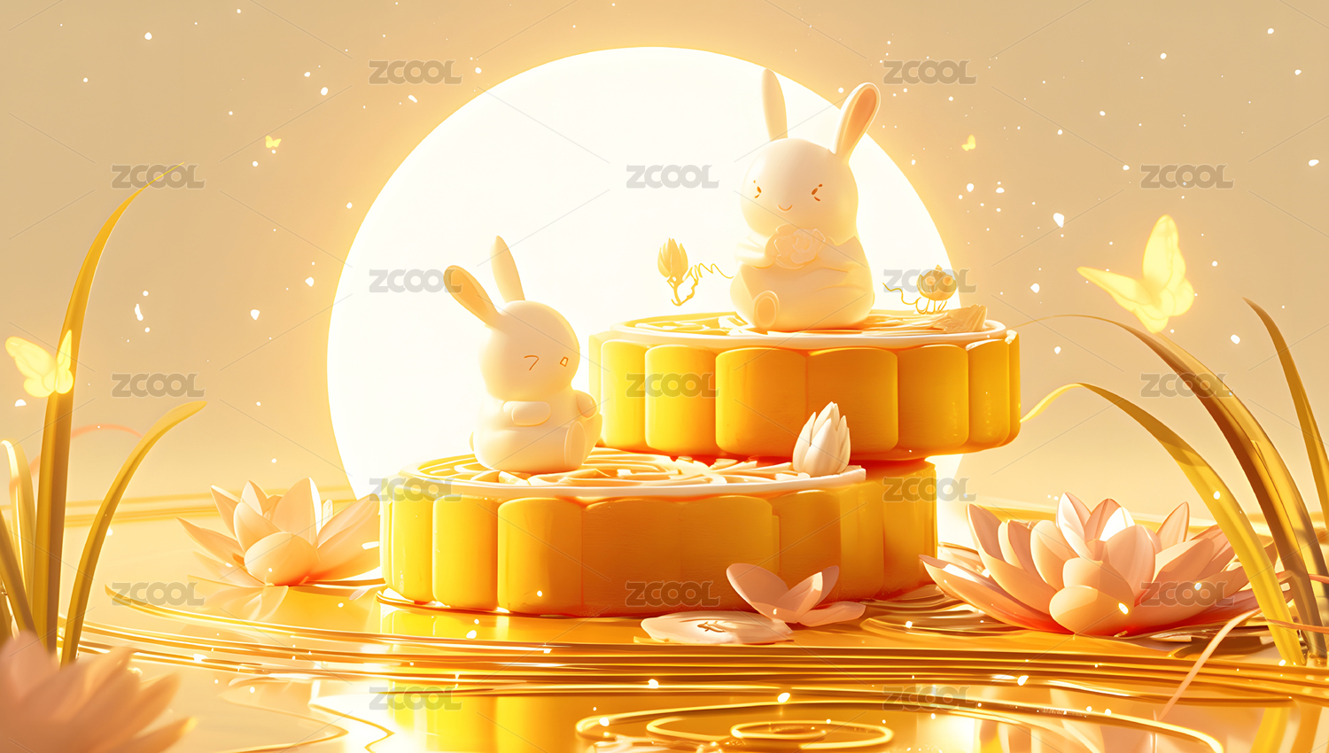 AIGC202403,展台,中秋,月亮,植物,花,产品,兔子,月饼