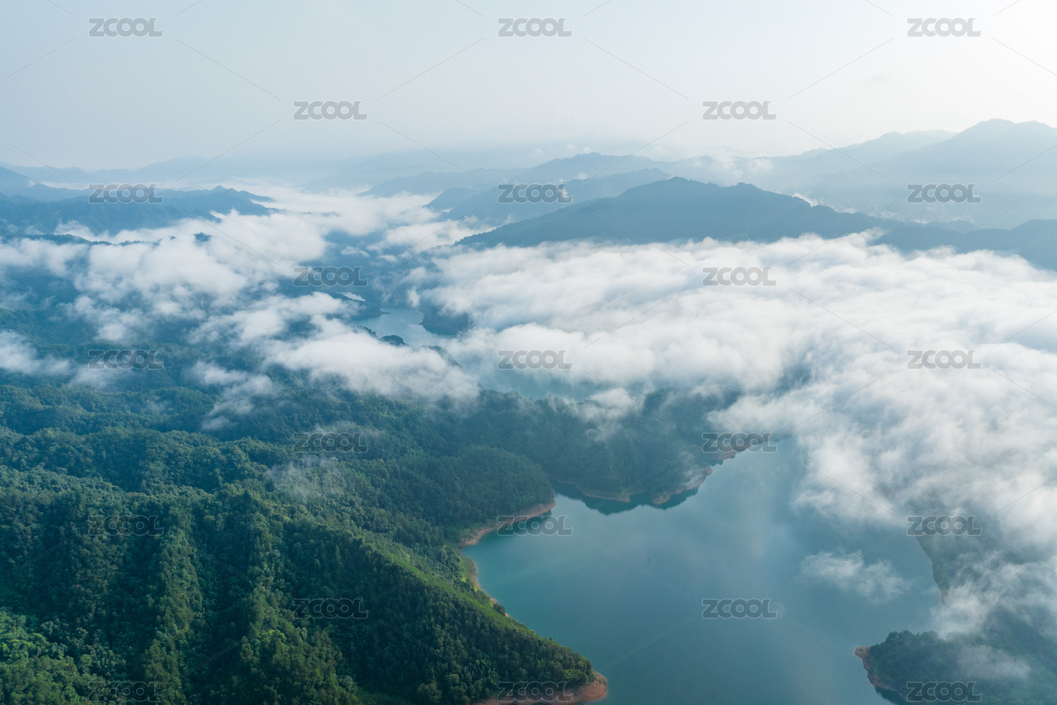 中国广西蒙山县茶山湖风景区云雾缭绕风景如