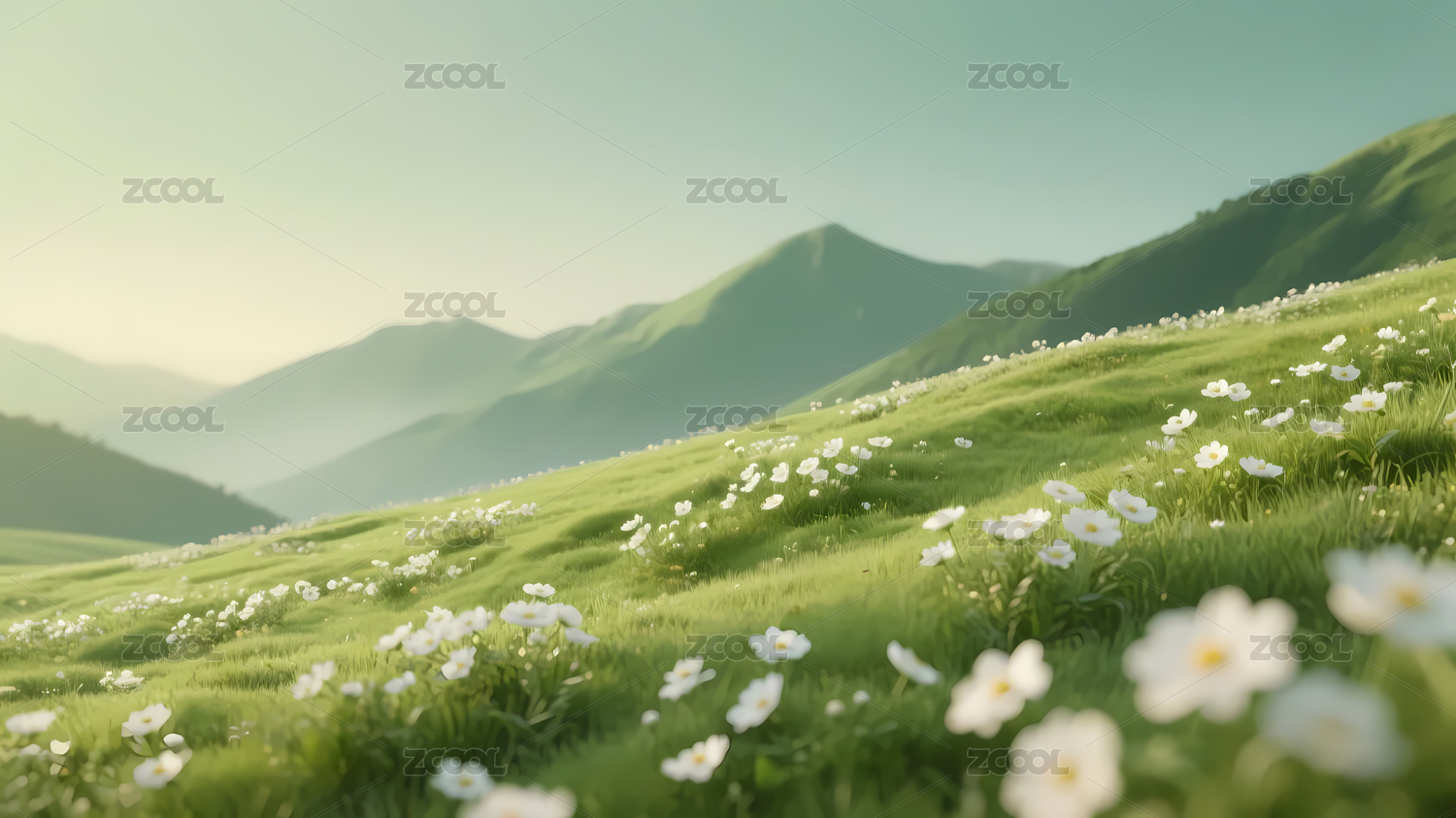 柔和山坡白花点缀