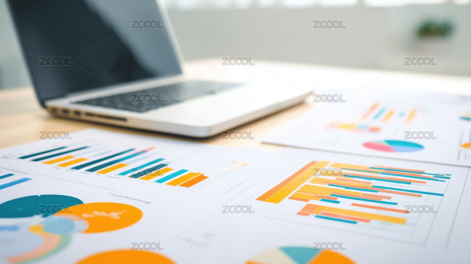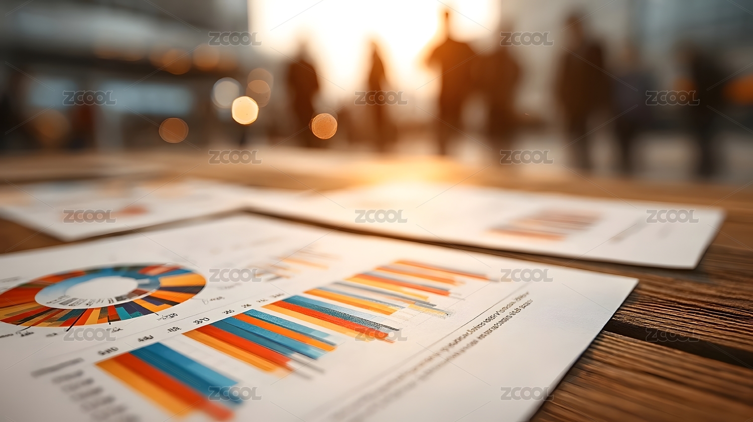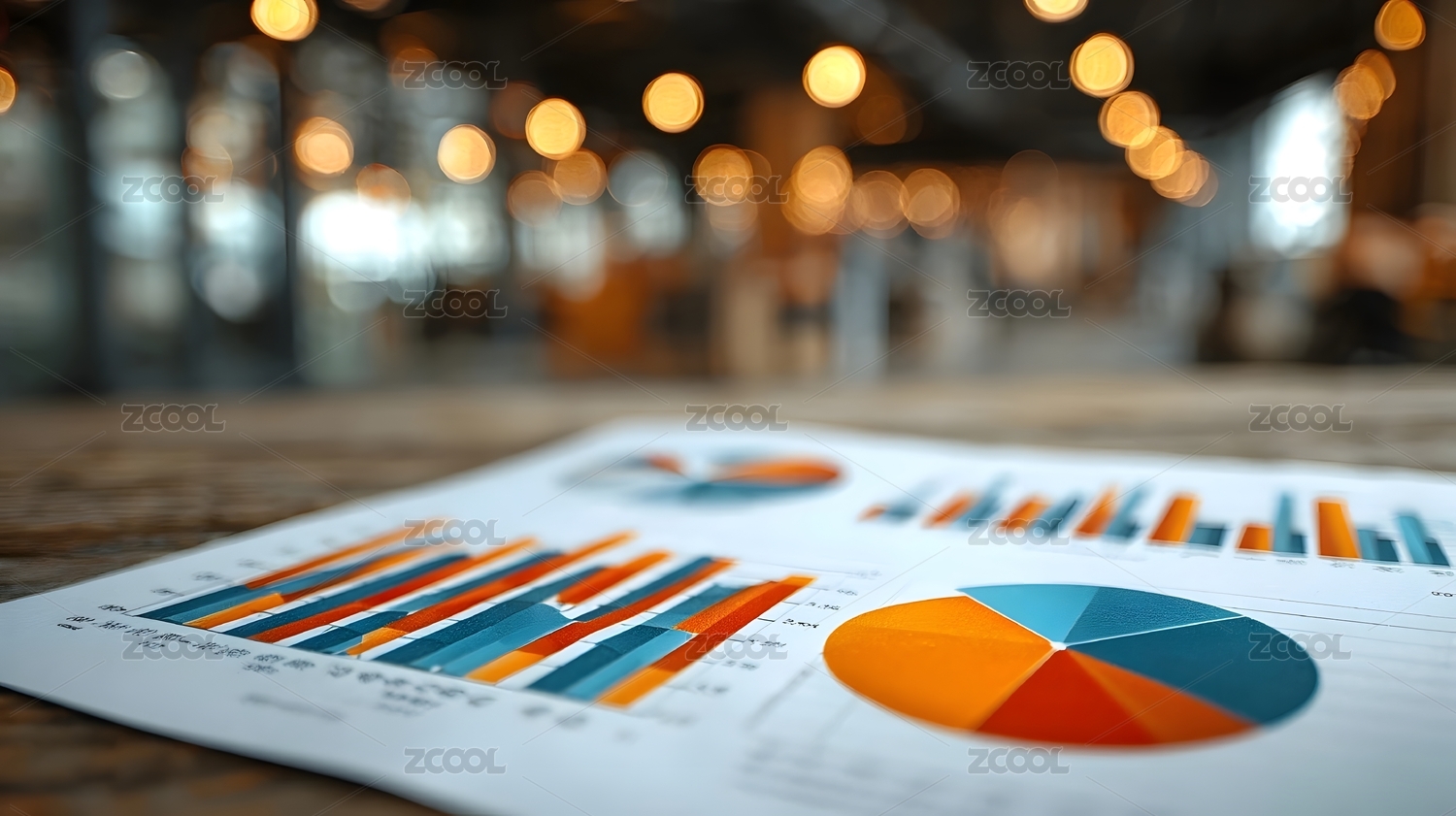 金融图表文档特写,色彩缤纷的饼图柱状图