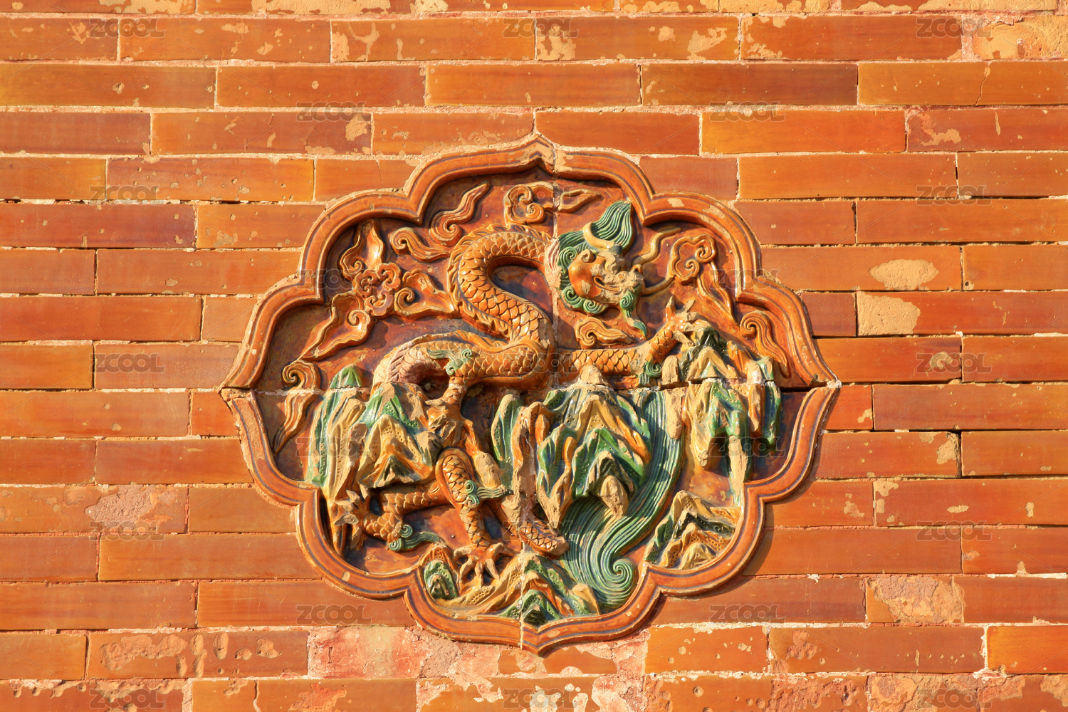 广东深圳赤湾天后宫中华海神照壁砖雕 麒麟