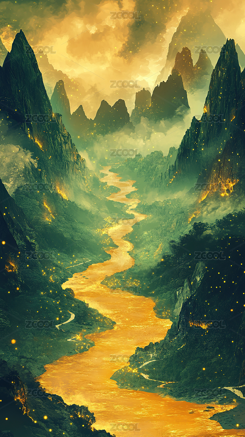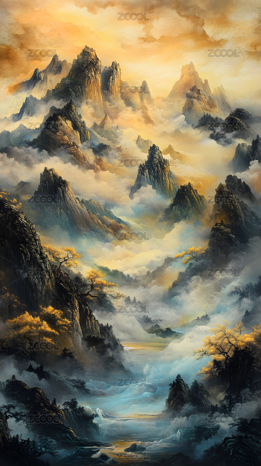 金色山河水墨画卷