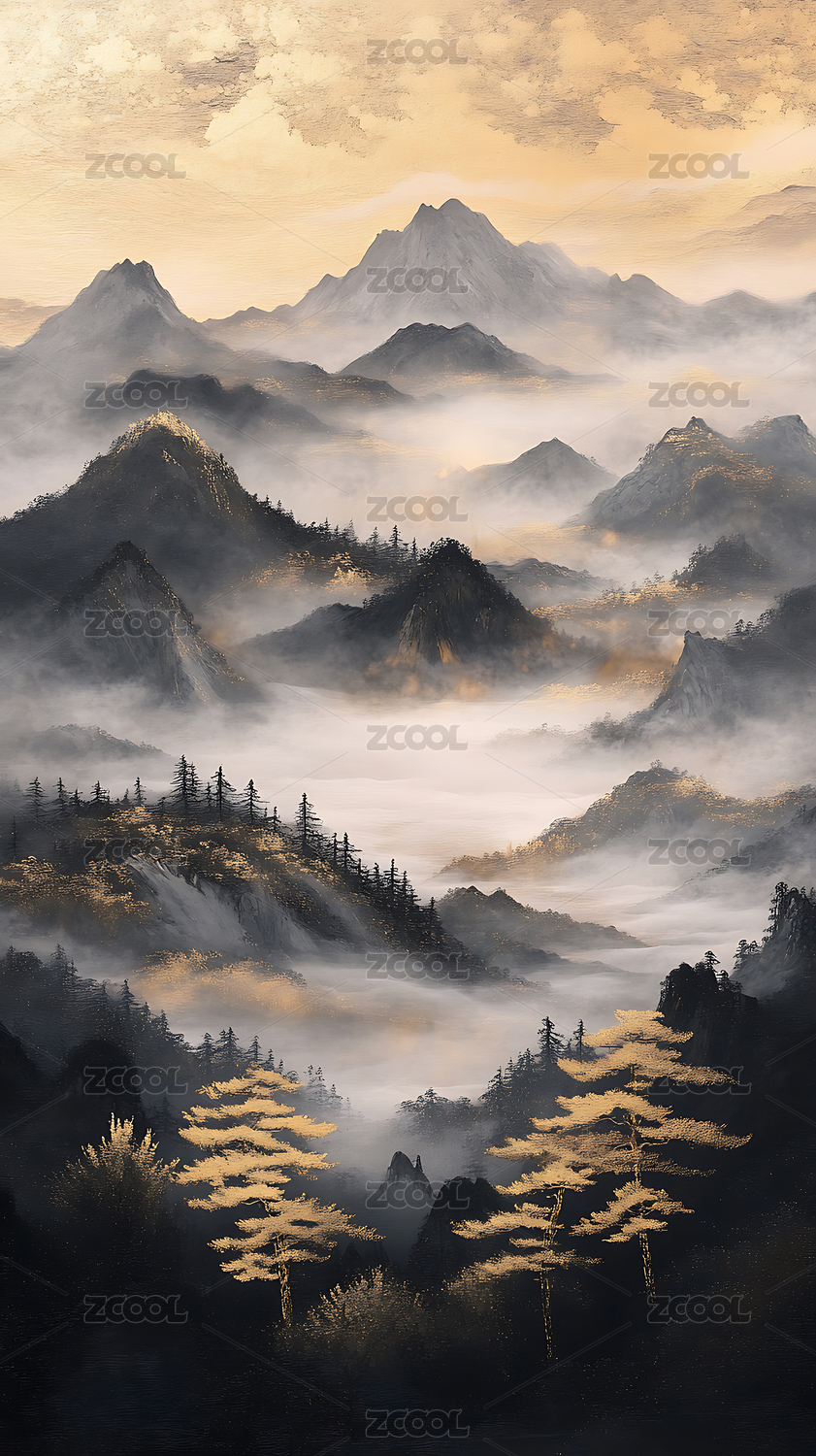 水墨山水云雾缭绕的壮丽景象