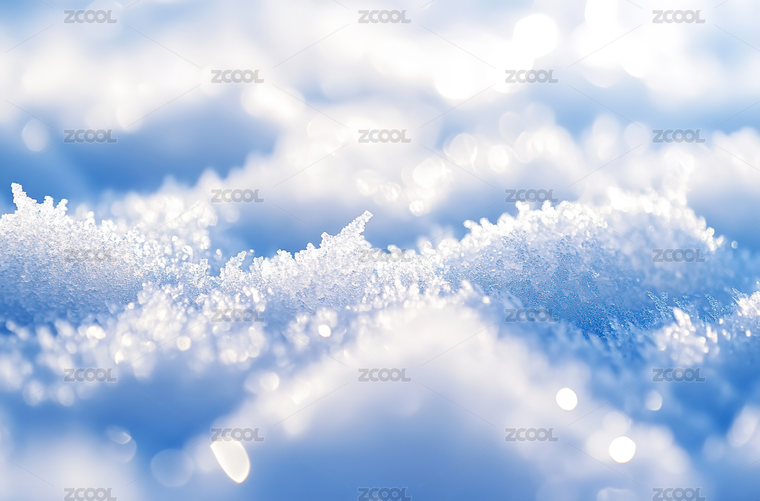 蓝色背景下的雪特写镜头
